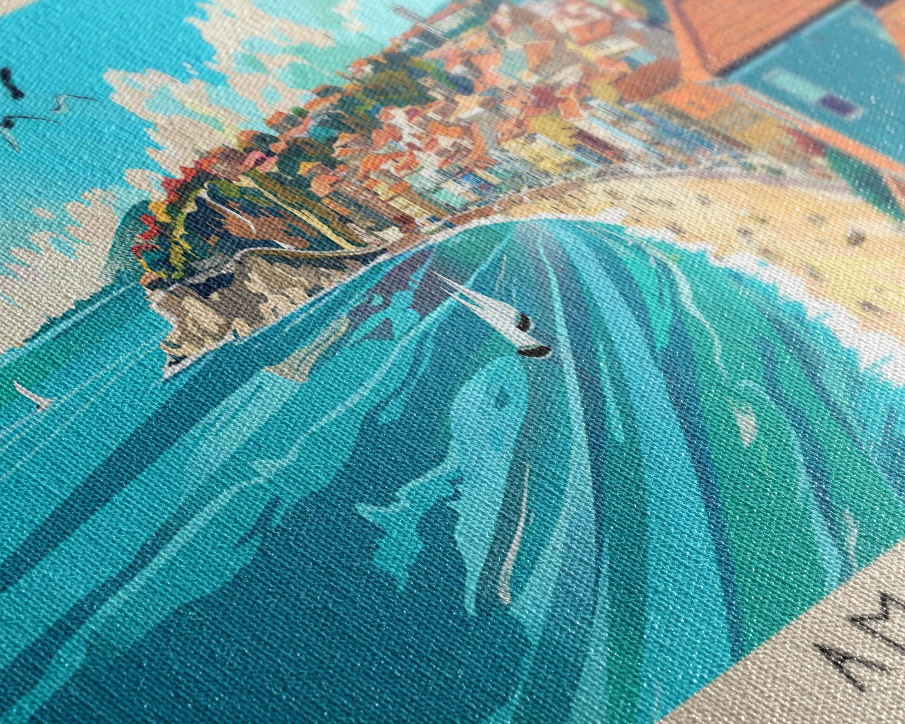 Most of our canvases are made in the USA, with the exception of canvases ordered with the light oak unstained frames, and any large canvases (24x48, 30x60, 16x48 and 20x60) ordered WITH a frame. These are temporarily made in and shipped from Europe, while we try to find a more consistent supplier in the USA.