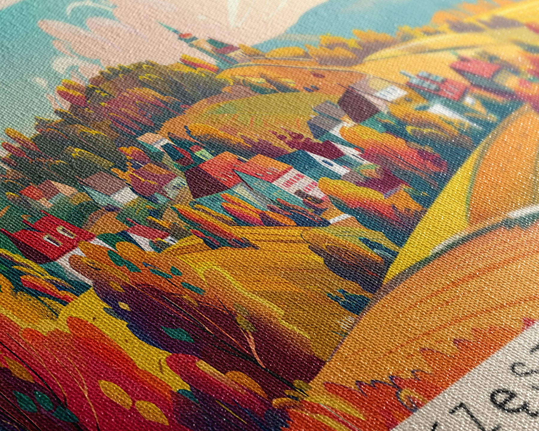 Most of our canvases are made in the USA, with the exception of canvases ordered with the light oak unstained frames, and any large canvases (24x48, 30x60, 16x48 and 20x60) ordered WITH a frame. These are temporarily made in and shipped from Europe, while we try to find a more consistent supplier in the USA.