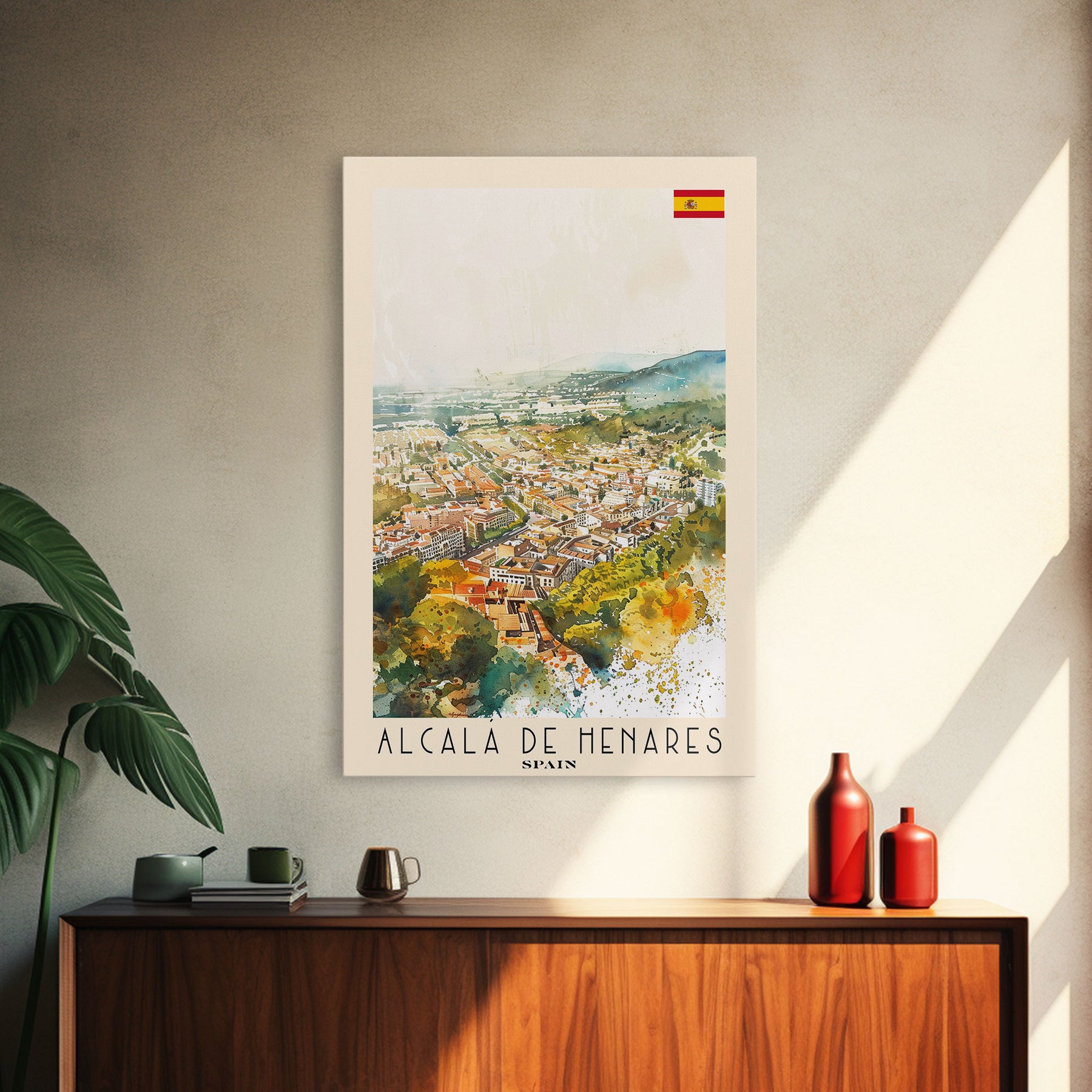Alcalį de Henares Spain Aerial View Travel Poster Art, Framed Canvas Print, Stunning Wall Art for Living Room and Bedroom Decor