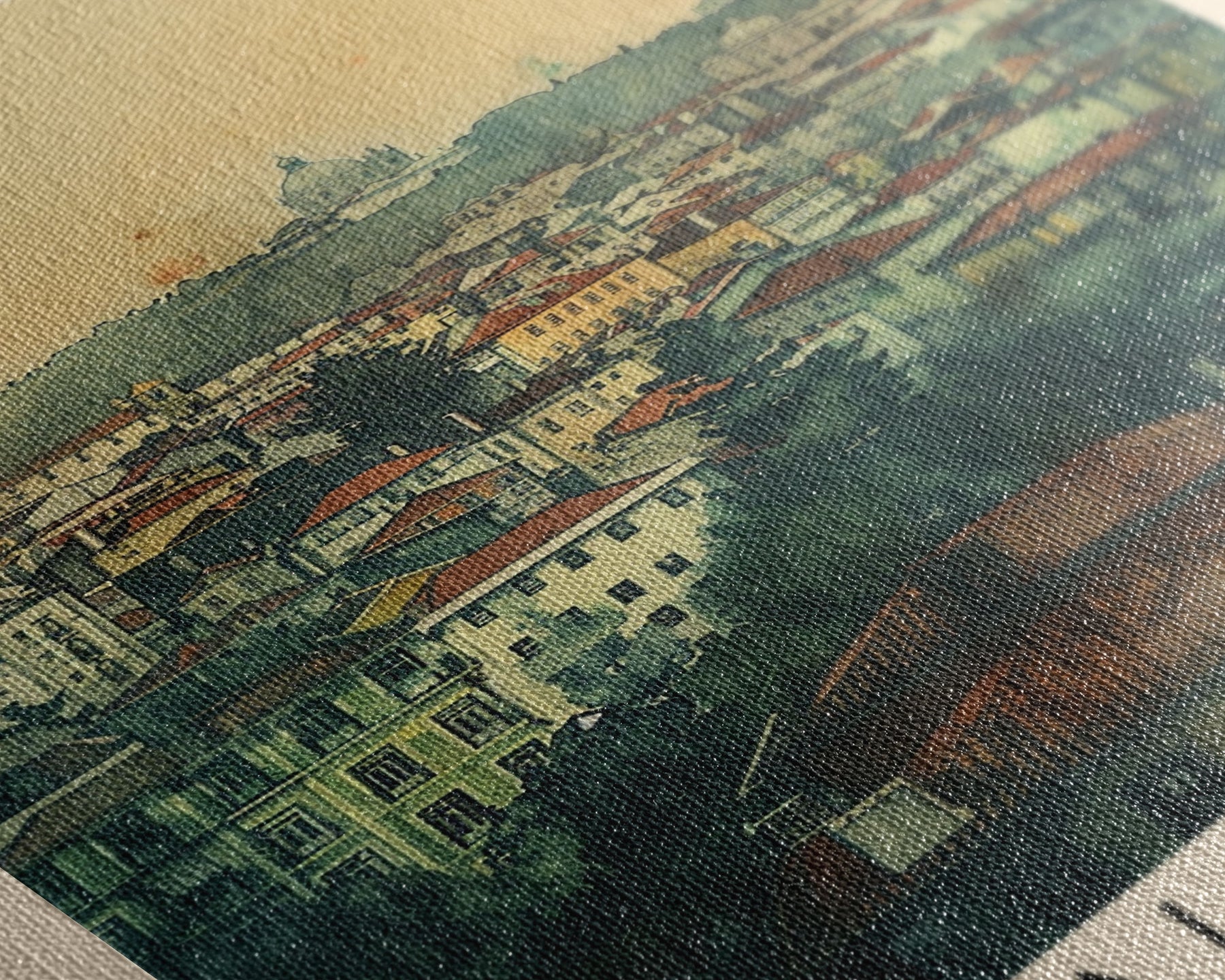 Most of our canvases are made in the USA, with the exception of canvases ordered with the light oak unstained frames, and any large canvases (24x48, 30x60, 16x48 and 20x60) ordered WITH a frame. These are temporarily made in and shipped from Europe, while we try to find a more consistent supplier in the USA.