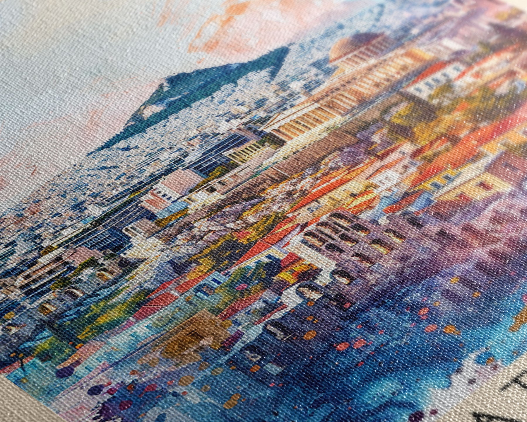 Most of our canvases are made in the USA, with the exception of canvases ordered with the light oak unstained frames, and any large canvases (24x48, 30x60, 16x48 and 20x60) ordered WITH a frame. These are temporarily made in and shipped from Europe, while we try to find a more consistent supplier in the USA.