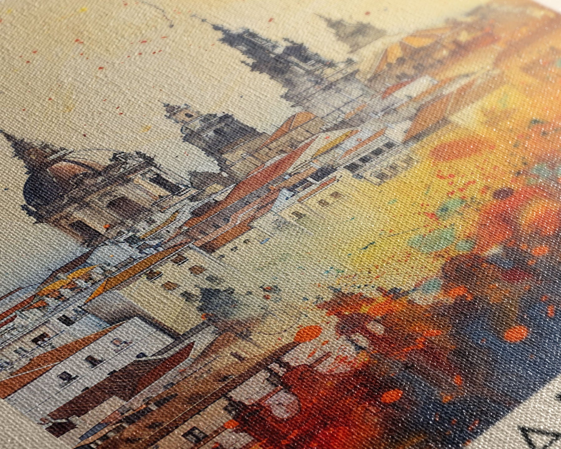 Most of our canvases are made in the USA, with the exception of canvases ordered with the light oak unstained frames, and any large canvases (24x48, 30x60, 16x48 and 20x60) ordered WITH a frame. These are temporarily made in and shipped from Europe, while we try to find a more consistent supplier in the USA.
