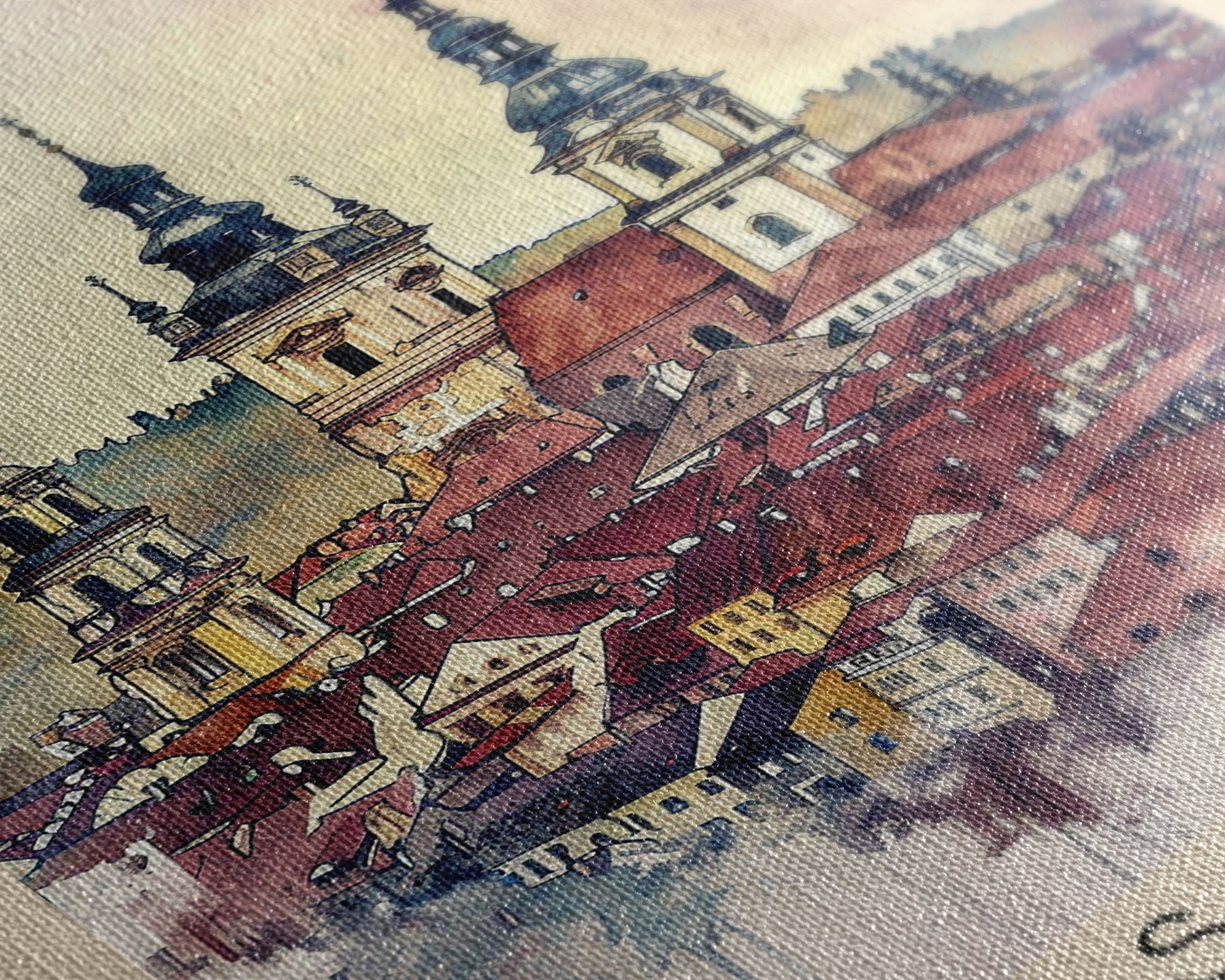 Most of our canvases are made in the USA, with the exception of canvases ordered with the light oak unstained frames, and any large canvases (24x48, 30x60, 16x48 and 20x60) ordered WITH a frame. These are temporarily made in and shipped from Europe, while we try to find a more consistent supplier in the USA.