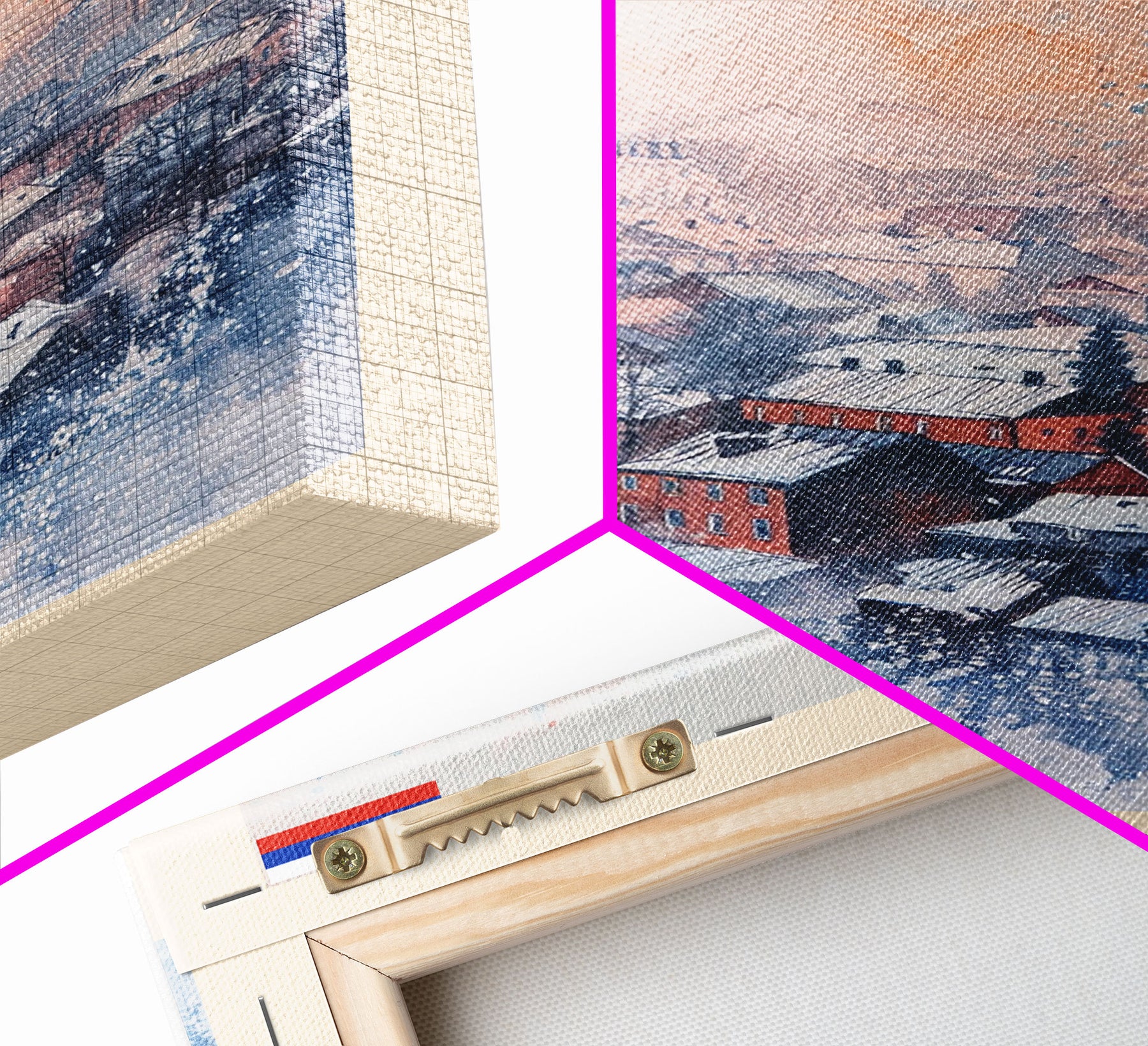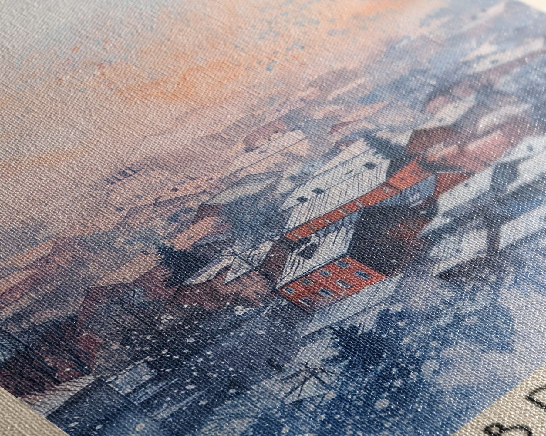 Most of our canvases are made in the USA, with the exception of canvases ordered with the light oak unstained frames, and any large canvases (24x48, 30x60, 16x48 and 20x60) ordered WITH a frame. These are temporarily made in and shipped from Europe, while we try to find a more consistent supplier in the USA.