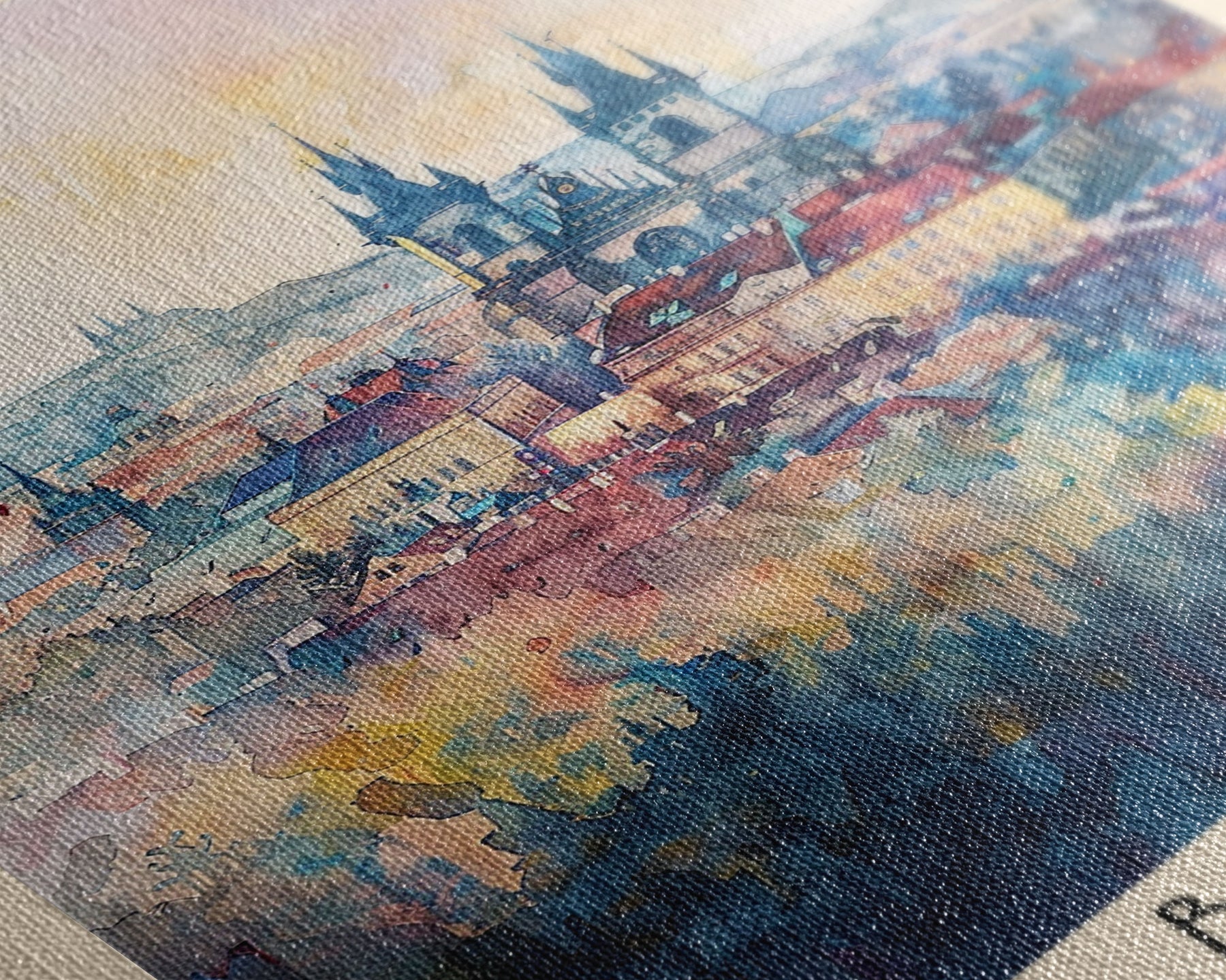 Brno Czech Republic Travel Poster Framed Canvas Print, Cityscape Art, Wall Decor, Travel Print, Watercolor Painting, Boho Style Art
