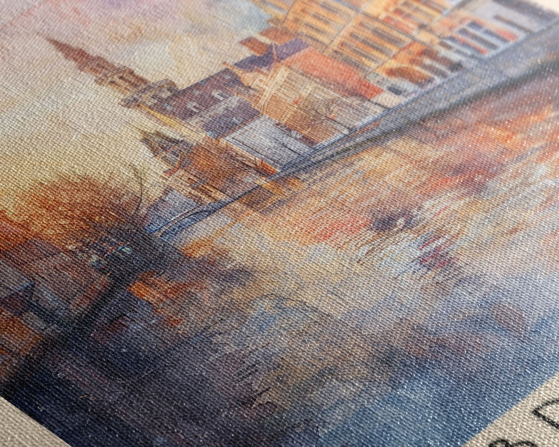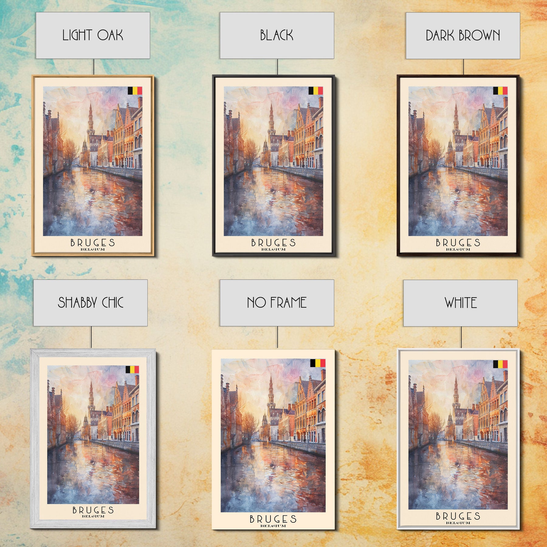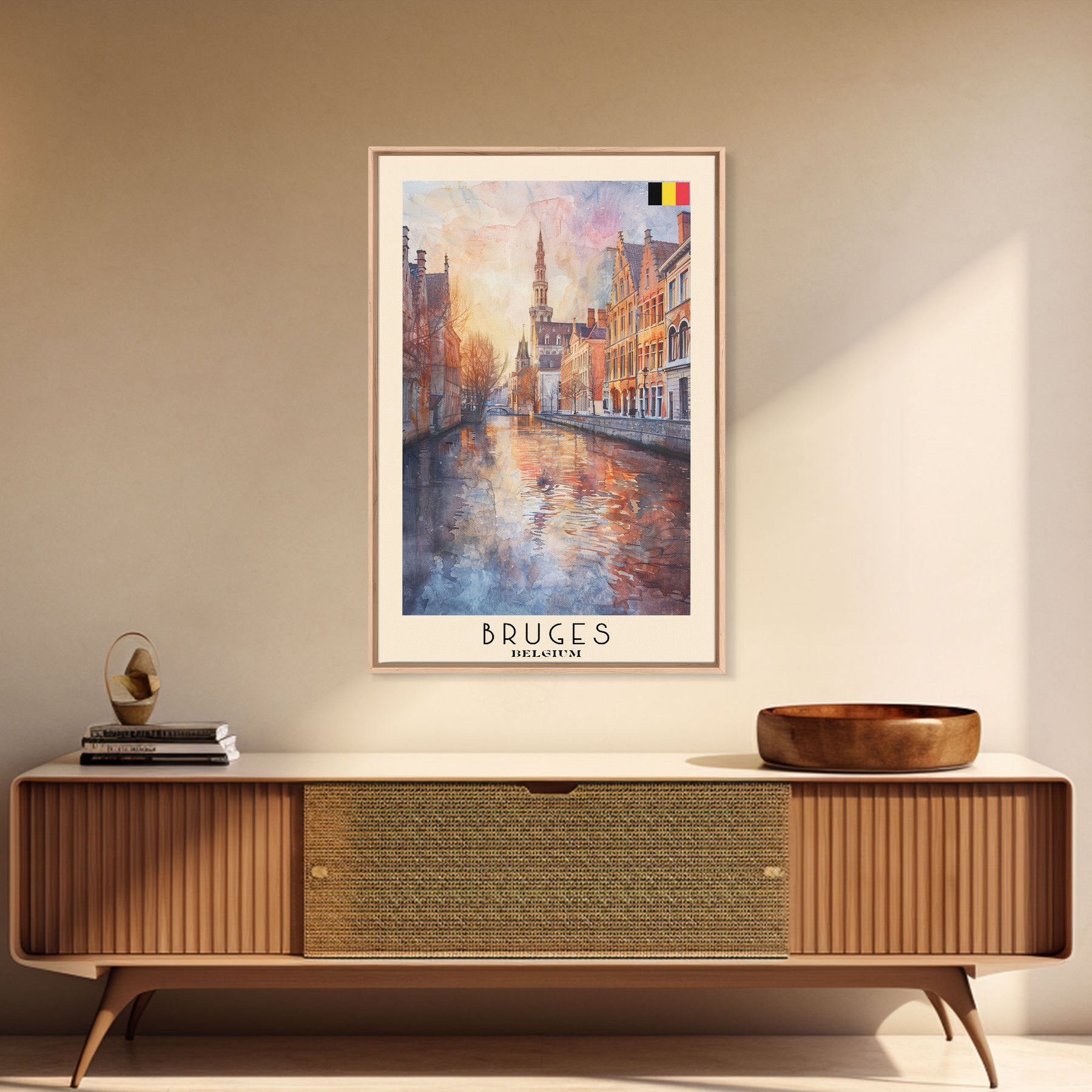 Bruges Belgium Travel Poster Framed Canvas Print, Watercolor Painting, Boho Wall Art, Home Decor, Living Room Art, Minimalist Travel Print