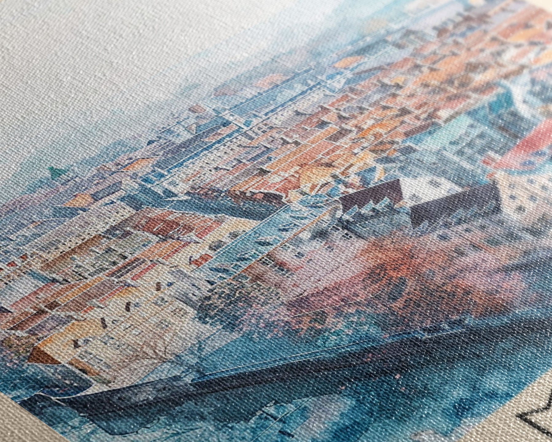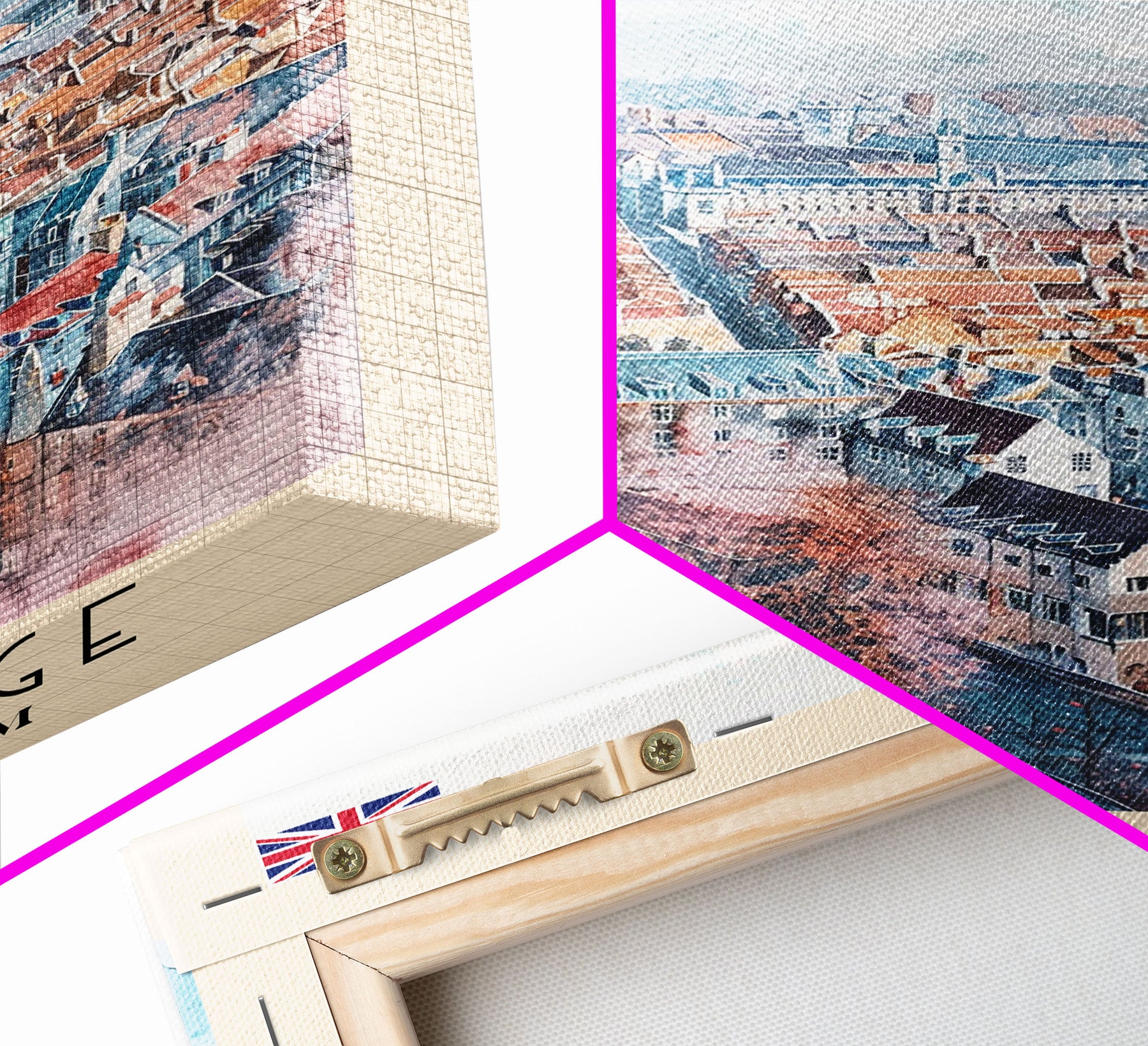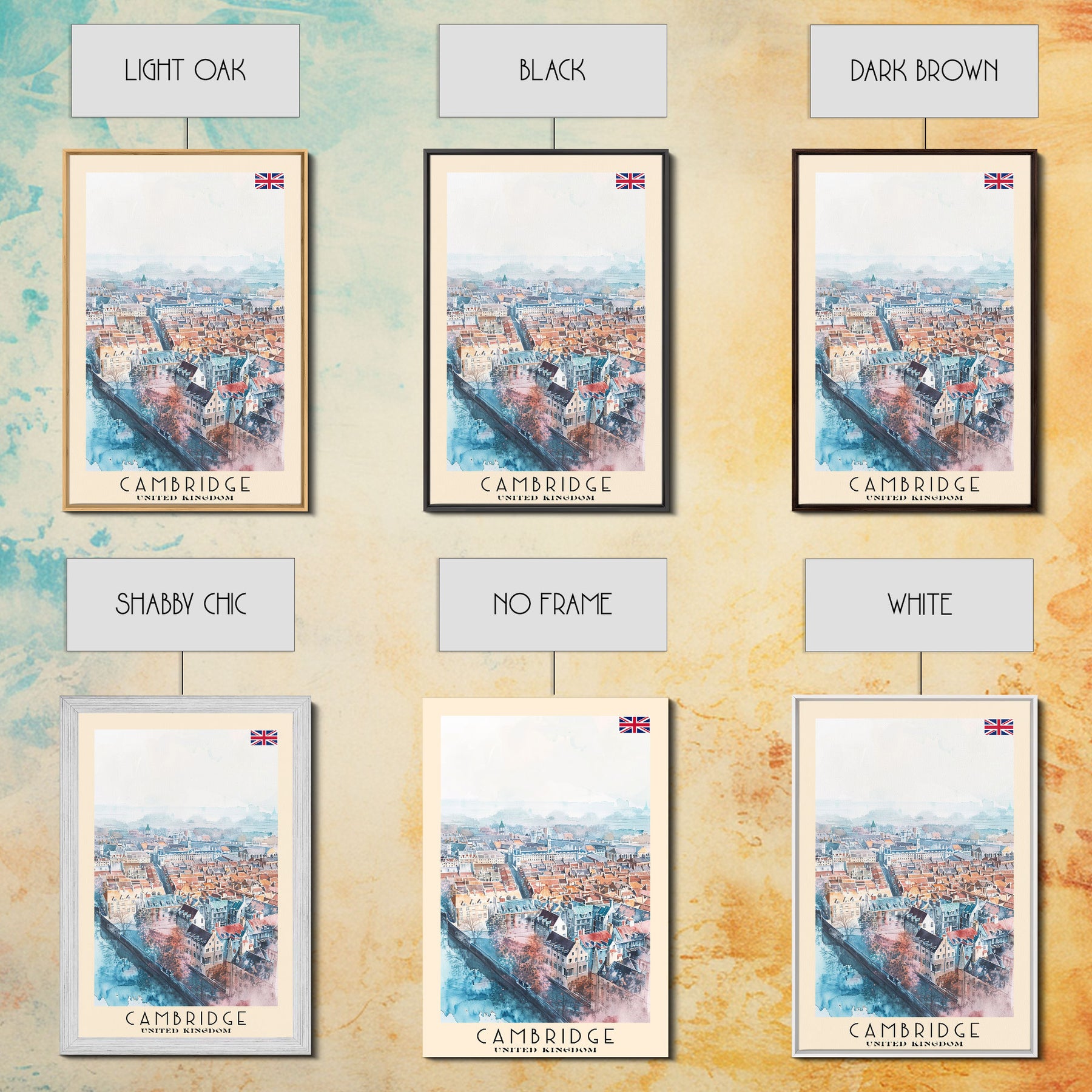 Cambridge United Kingdom Travel Poster Framed Canvas Print, Wall Art, Home Decor, Travel Print, Vacation Gift, Watercolor Painting, Original Art