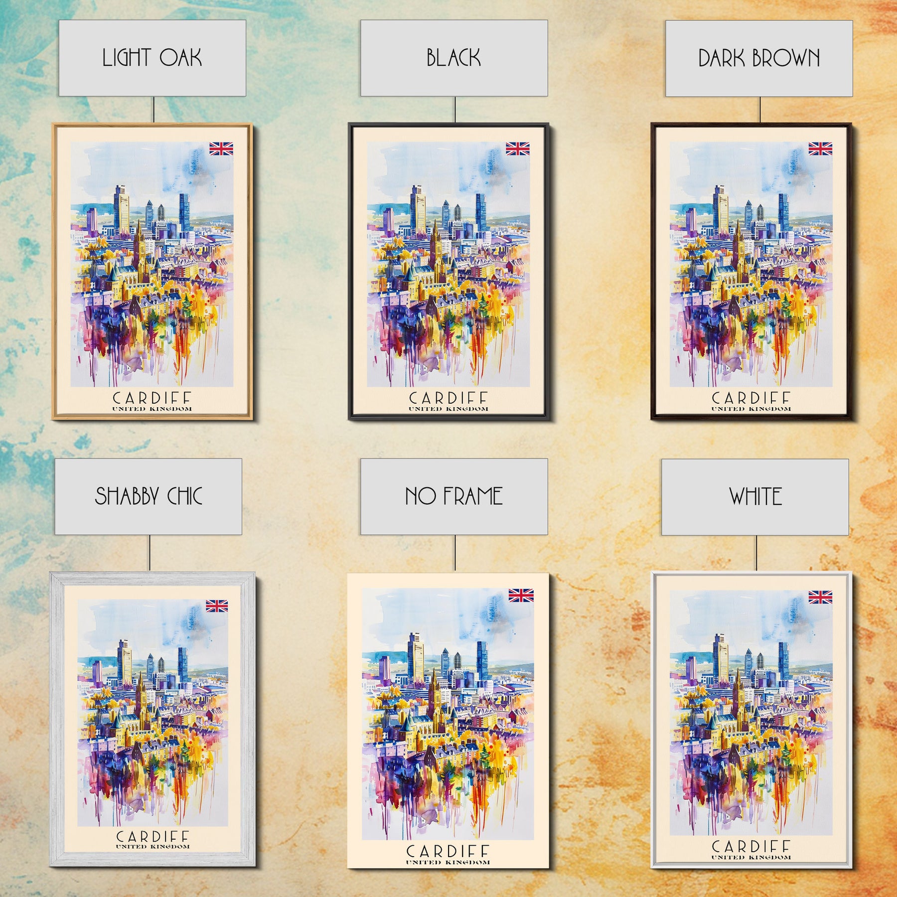Cardiff United Kingdom Travel Poster Framed Canvas Print, Wall Art, Home Decor, Travel Print, Vacation Gift, Watercolor Painting, Original Art