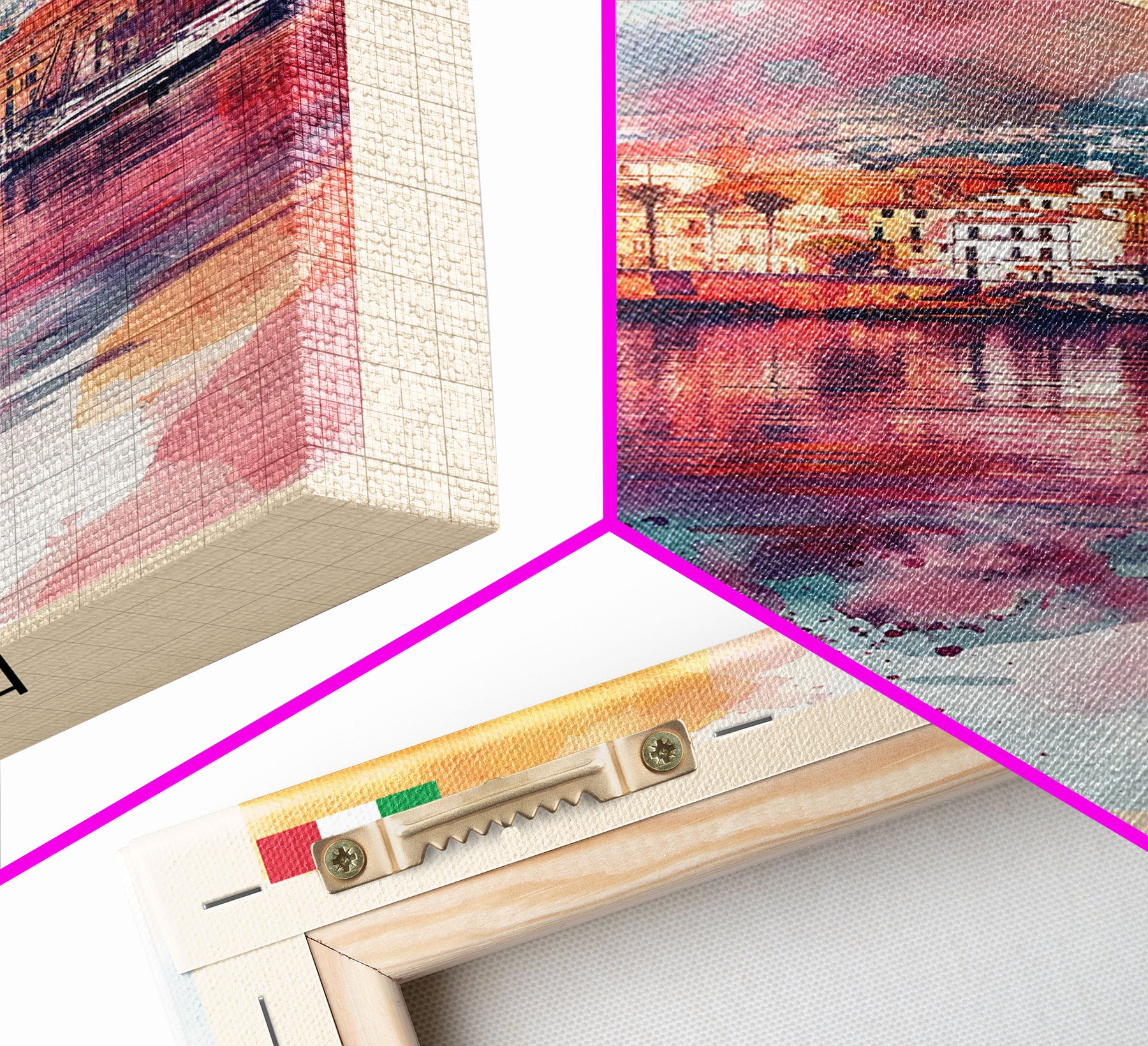 Most of our canvases are made in the USA, with the exception of canvases ordered with the light oak unstained frames, and any large canvases (24x48, 30x60, 16x48 and 20x60) ordered WITH a frame. These are temporarily made in and shipped from Europe, while we try to find a more consistent supplier in the USA.