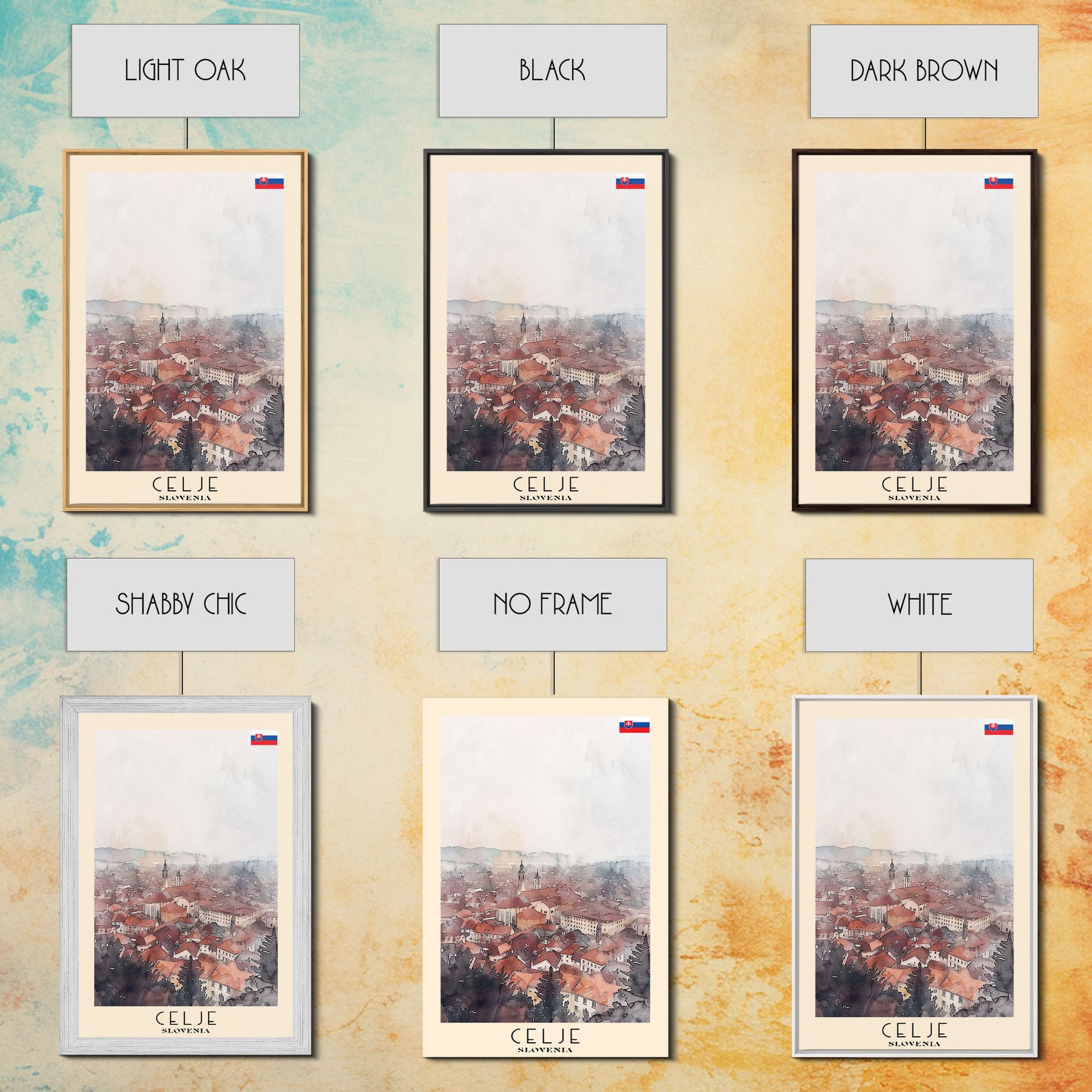 Celje Slovenia Travel Poster Framed Canvas Print, Wall Art, Home Decor, Travel Print, Vacation Gift, Watercolor Painting, Original Art