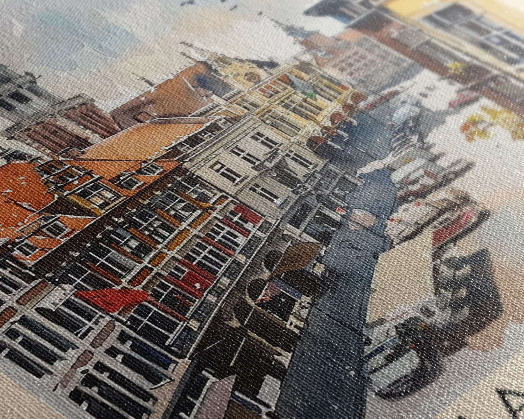 Most of our canvases are made in the USA, with the exception of canvases ordered with the light oak unstained frames, and any large canvases (24x48, 30x60, 16x48 and 20x60) ordered WITH a frame. These are temporarily made in and shipped from Europe, while we try to find a more consistent supplier in the USA.