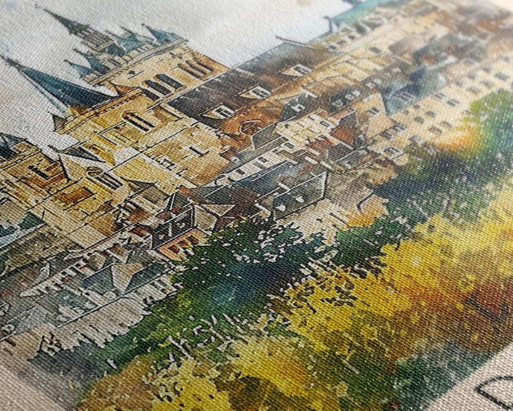 Most of our canvases are made in the USA, with the exception of canvases ordered with the light oak unstained frames, and any large canvases (24x48, 30x60, 16x48 and 20x60) ordered WITH a frame. These are temporarily made in and shipped from Europe, while we try to find a more consistent supplier in the USA.