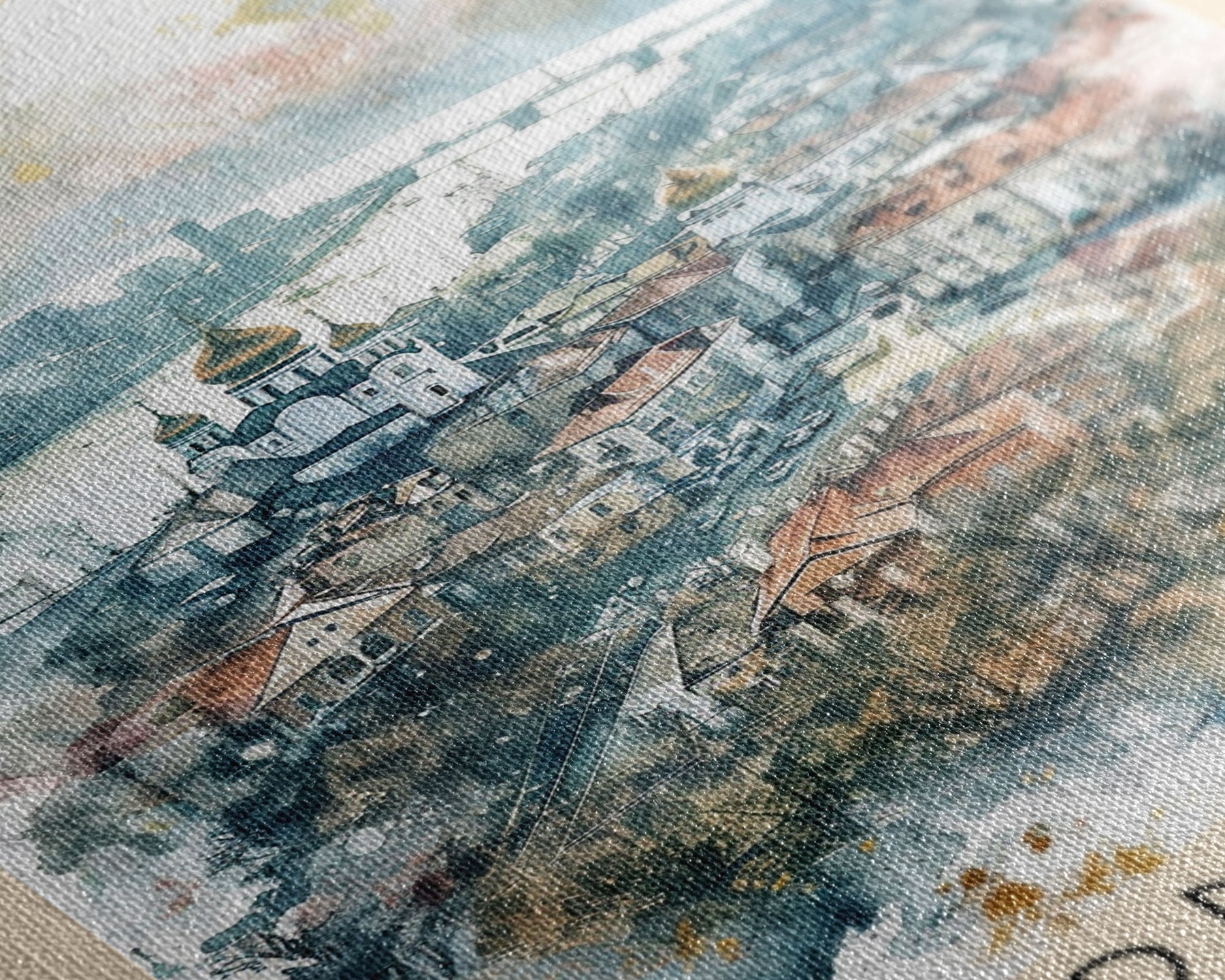 Most of our canvases are made in the USA, with the exception of canvases ordered with the light oak unstained frames, and any large canvases (24x48, 30x60, 16x48 and 20x60) ordered WITH a frame. These are temporarily made in and shipped from Europe, while we try to find a more consistent supplier in the USA.