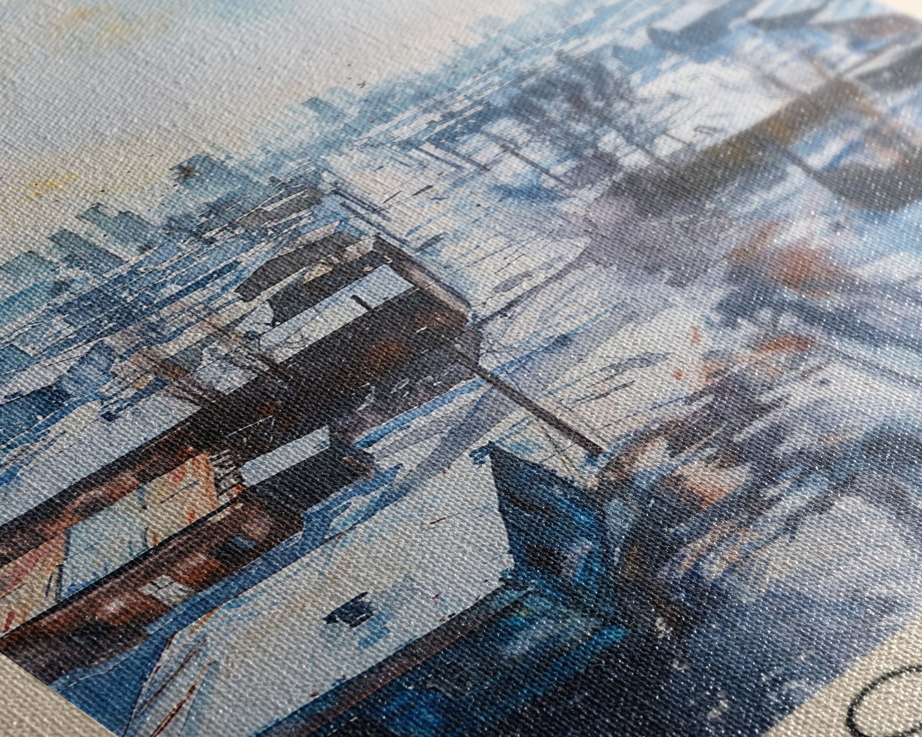 Most of our canvases are made in the USA, with the exception of canvases ordered with the light oak unstained frames, and any large canvases (24x48, 30x60, 16x48 and 20x60) ordered WITH a frame. These are temporarily made in and shipped from Europe, while we try to find a more consistent supplier in the USA.