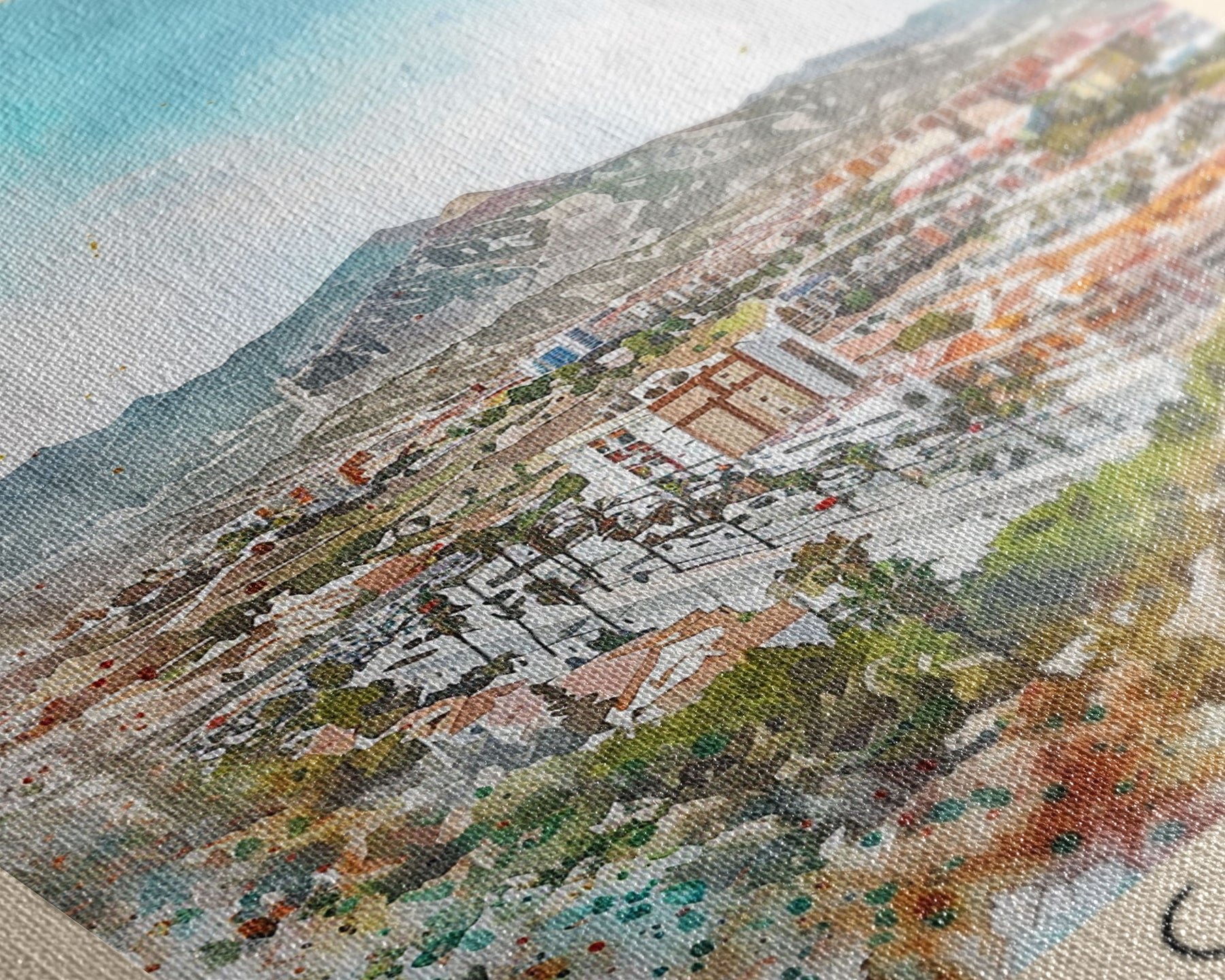 Most of our canvases are made in the USA, with the exception of canvases ordered with the light oak unstained frames, and any large canvases (24x48, 30x60, 16x48 and 20x60) ordered WITH a frame. These are temporarily made in and shipped from Europe, while we try to find a more consistent supplier in the USA.