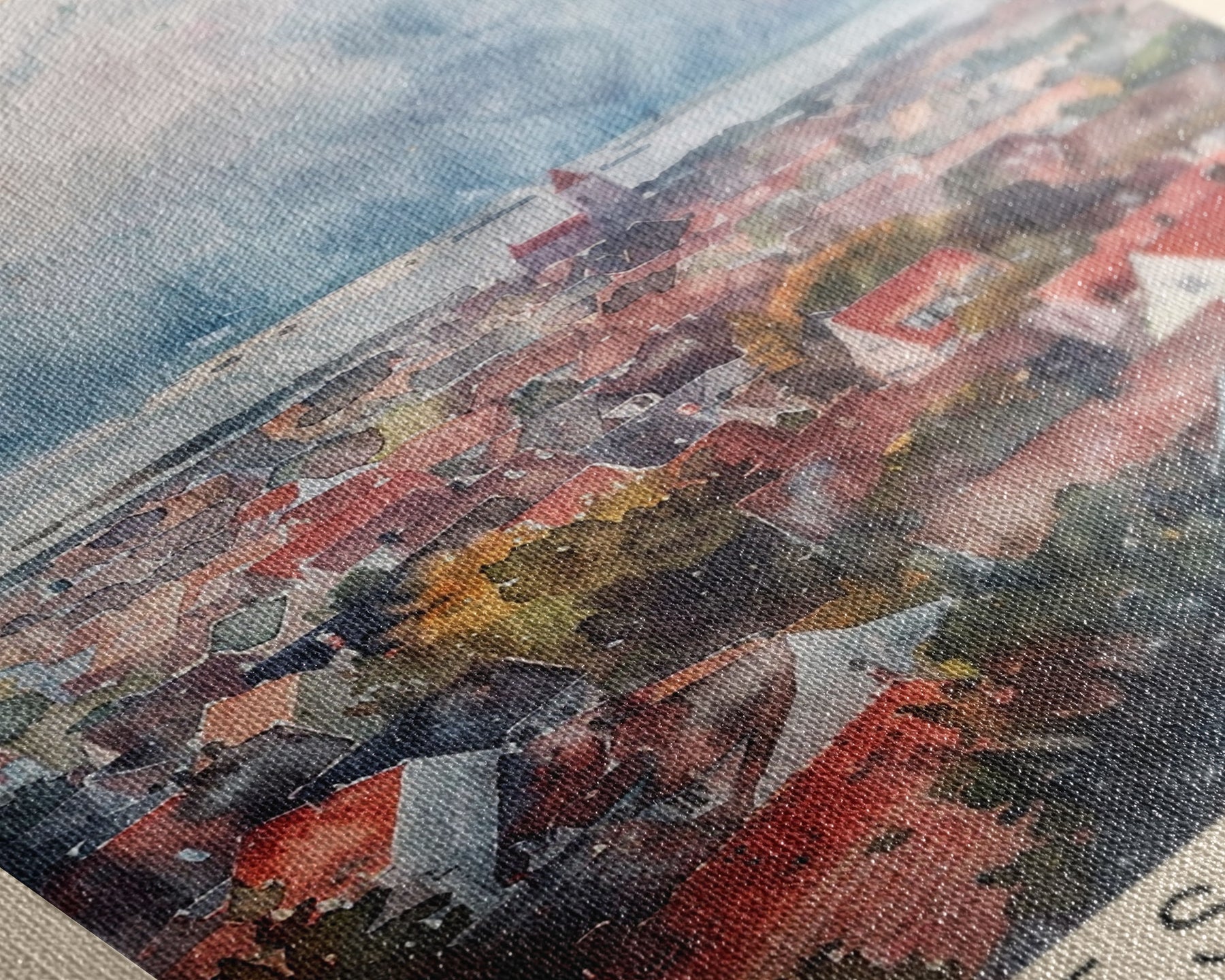 Most of our canvases are made in the USA, with the exception of canvases ordered with the light oak unstained frames, and any large canvases (24x48, 30x60, 16x48 and 20x60) ordered WITH a frame. These are temporarily made in and shipped from Europe, while we try to find a more consistent supplier in the USA.