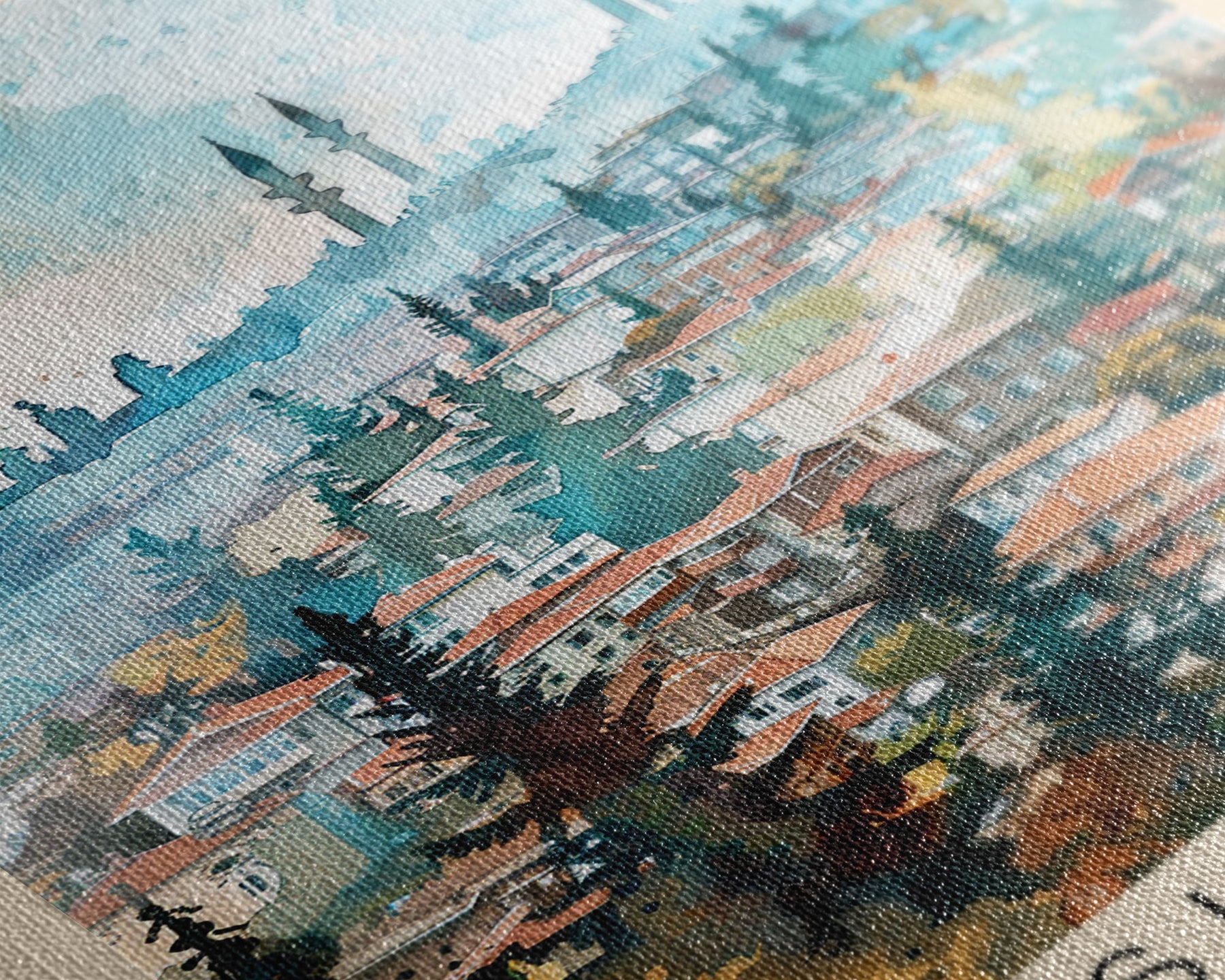 Most of our canvases are made in the USA, with the exception of canvases ordered with the light oak unstained frames, and any large canvases (24x48, 30x60, 16x48 and 20x60) ordered WITH a frame. These are temporarily made in and shipped from Europe, while we try to find a more consistent supplier in the USA.