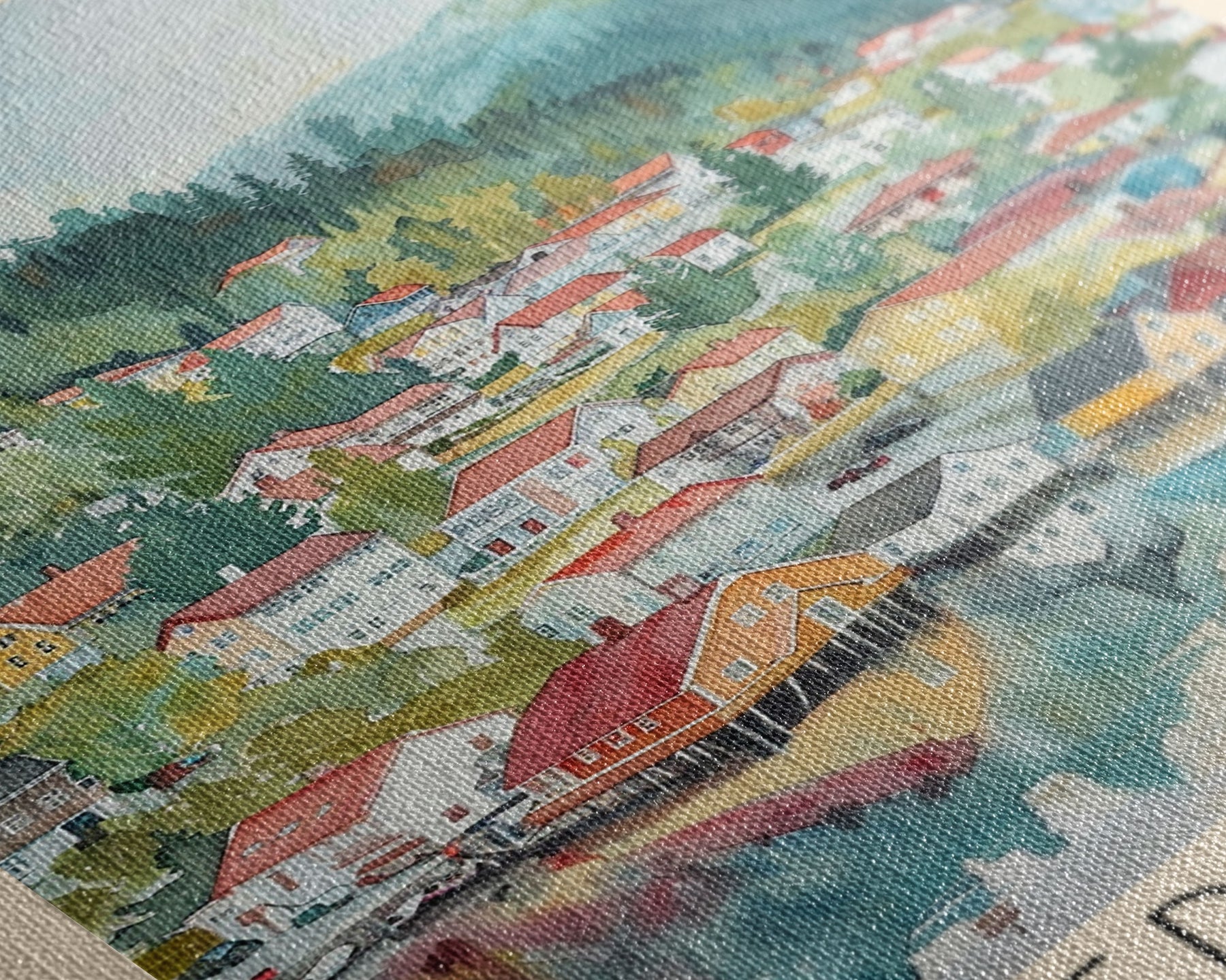 Most of our canvases are made in the USA, with the exception of canvases ordered with the light oak unstained frames, and any large canvases (24x48, 30x60, 16x48 and 20x60) ordered WITH a frame. These are temporarily made in and shipped from Europe, while we try to find a more consistent supplier in the USA.