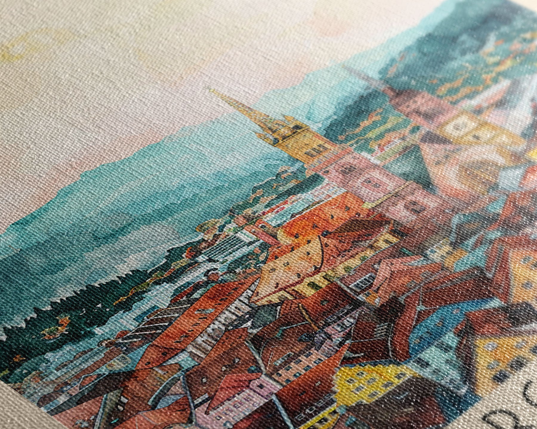 Most of our canvases are made in the USA, with the exception of canvases ordered with the light oak unstained frames, and any large canvases (24x48, 30x60, 16x48 and 20x60) ordered WITH a frame. These are temporarily made in and shipped from Europe, while we try to find a more consistent supplier in the USA.