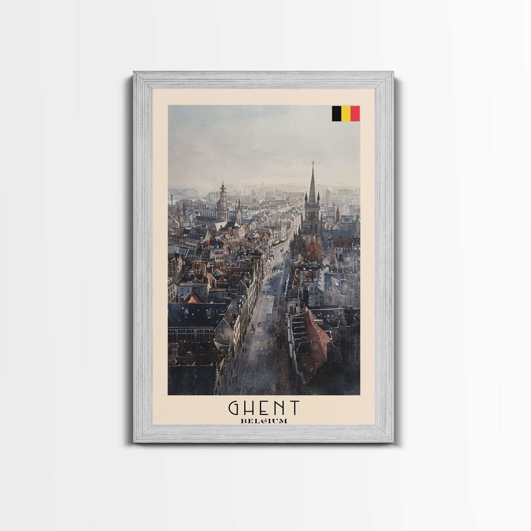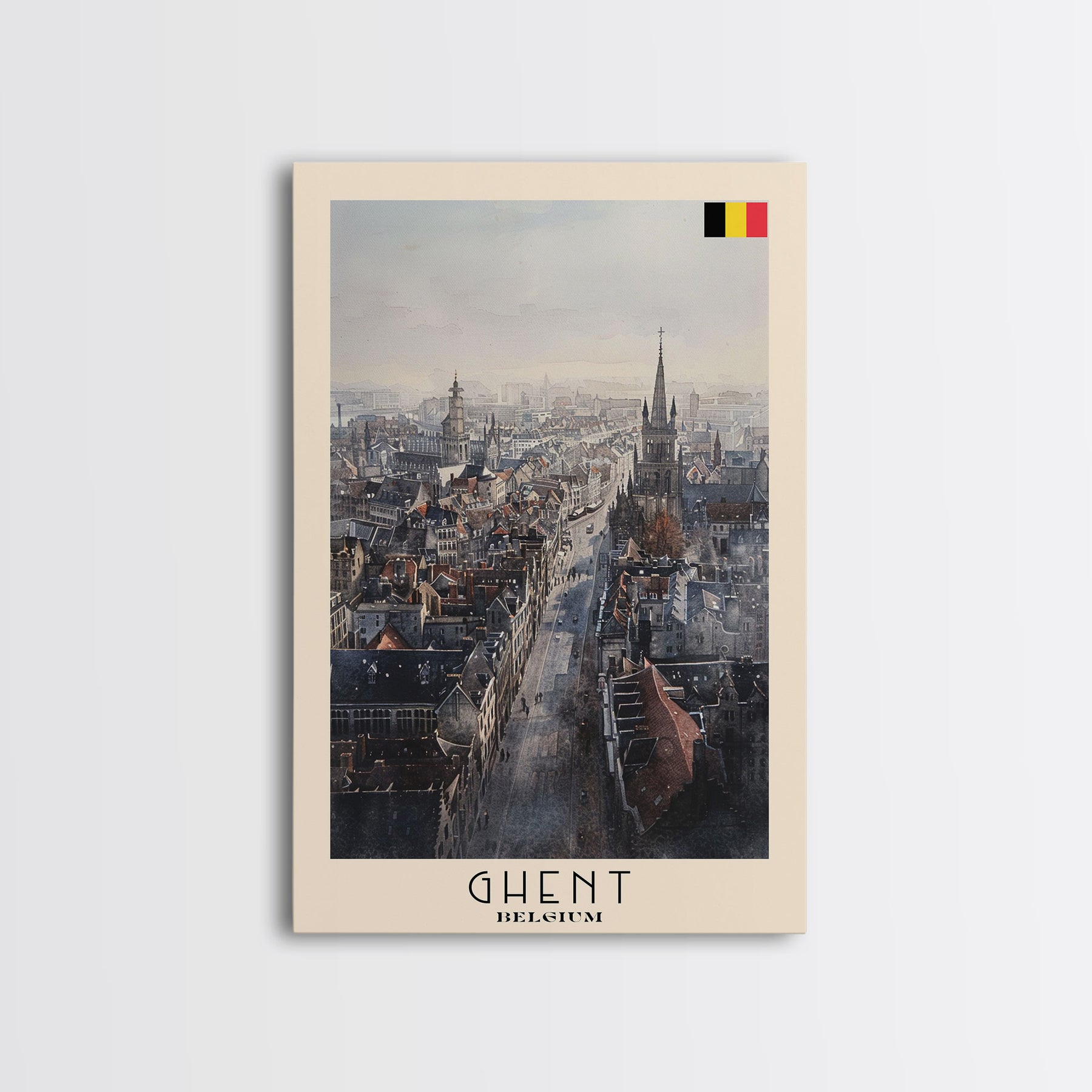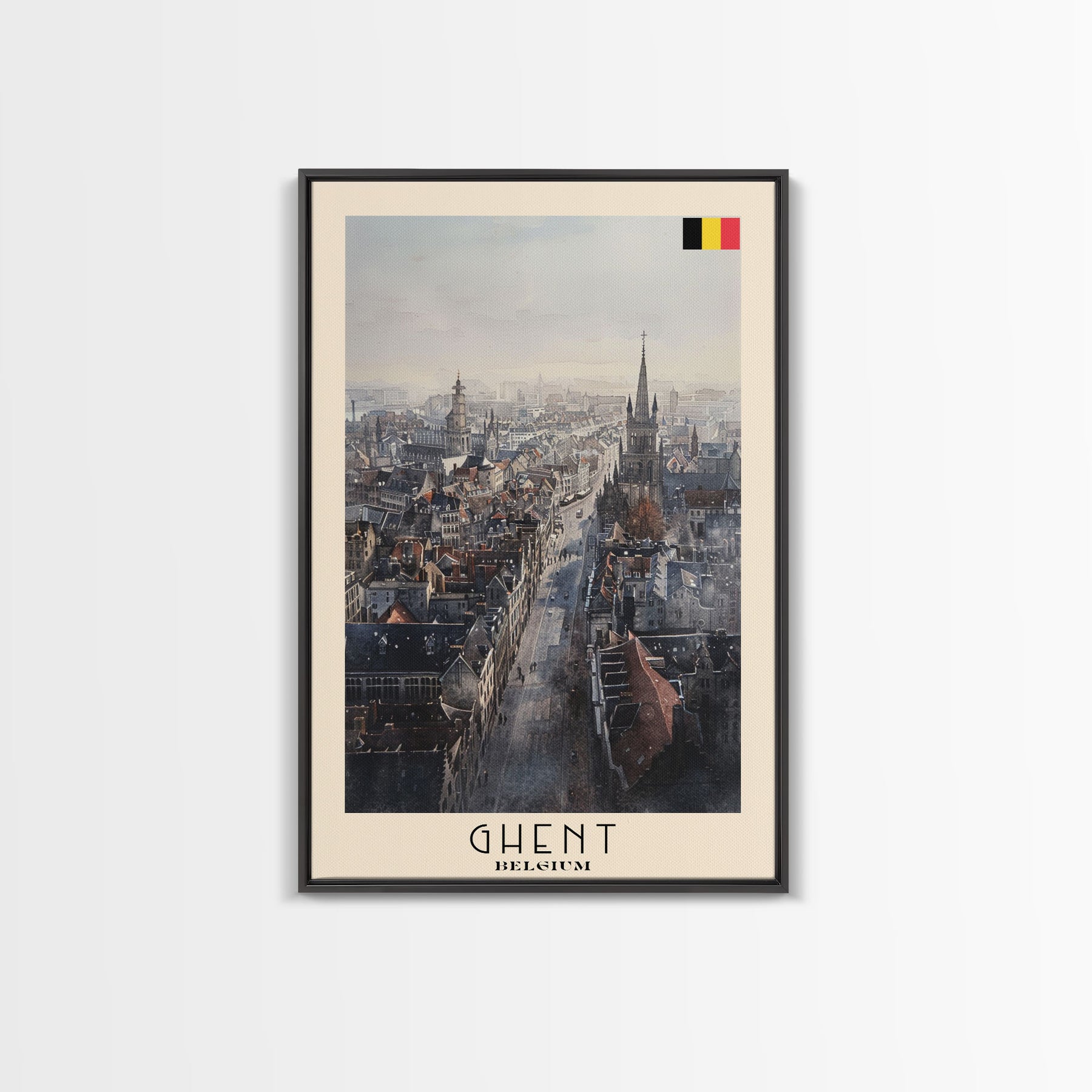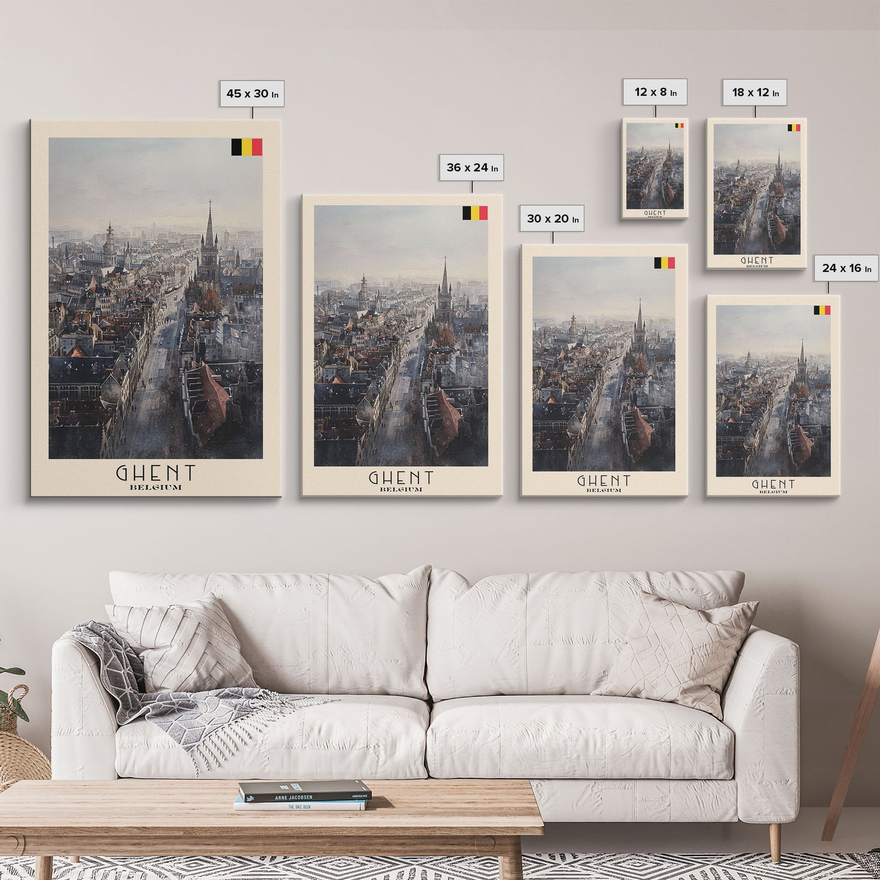 Ghent Belgium Cityscape Art, Framed Canvas Print, Living Room Wall Art, Travel Poster, Home Decoration, European Art