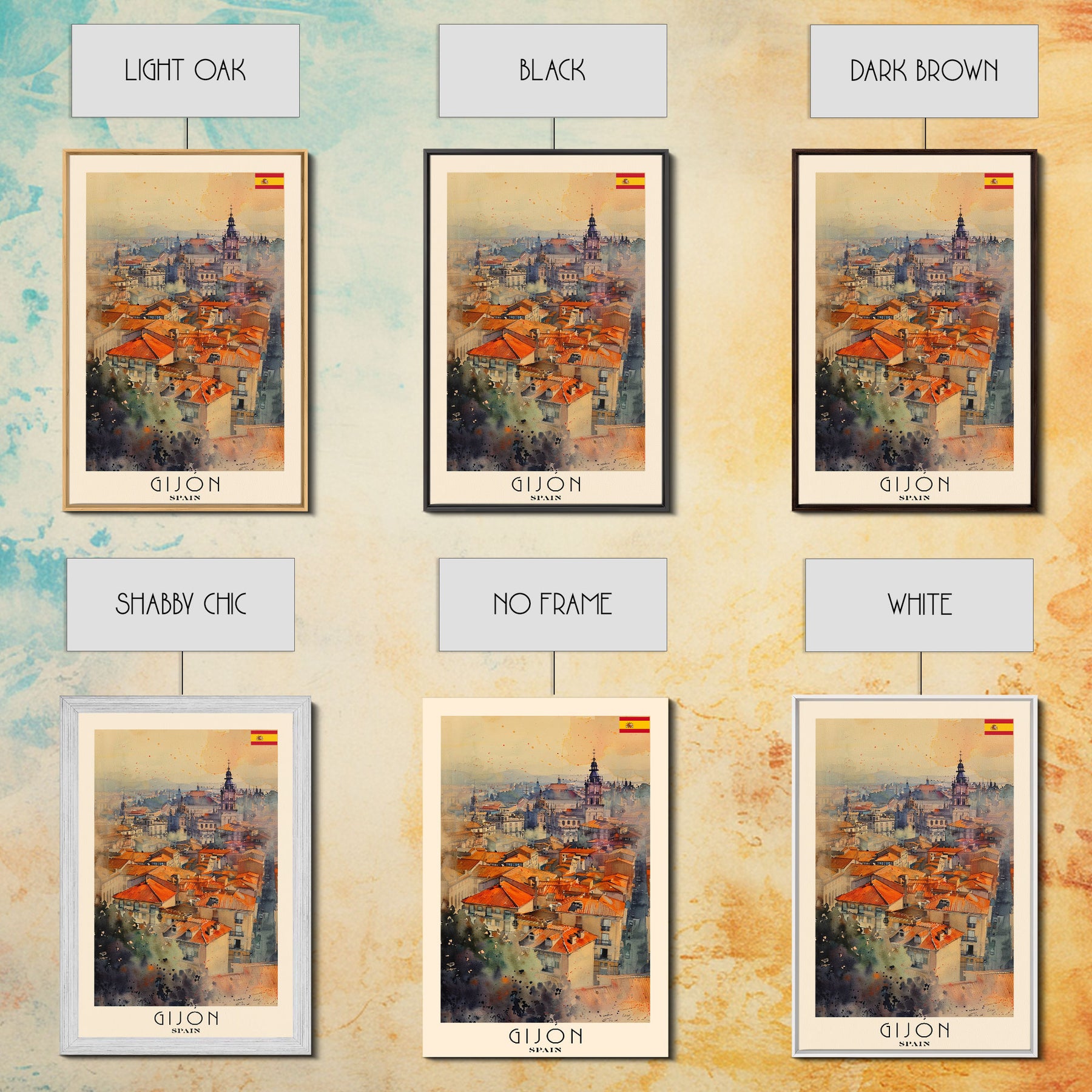 Gijon Spain City View Art, Framed Canvas Print, Bedroom Wall Art, Travel Poster Art, Unique Home Decor