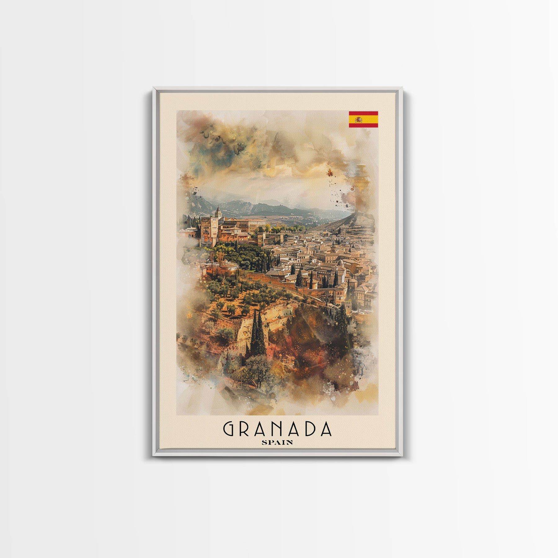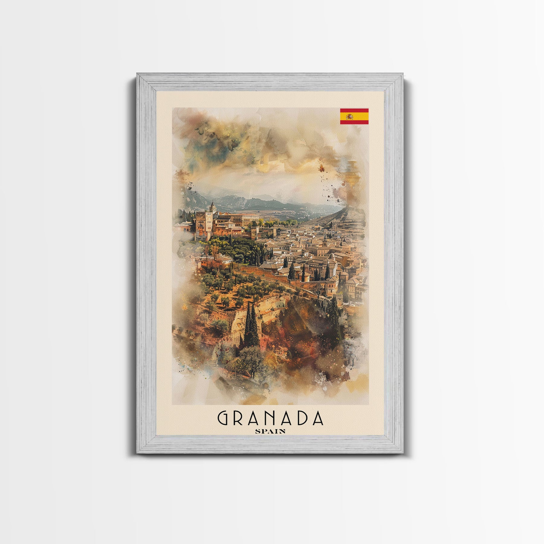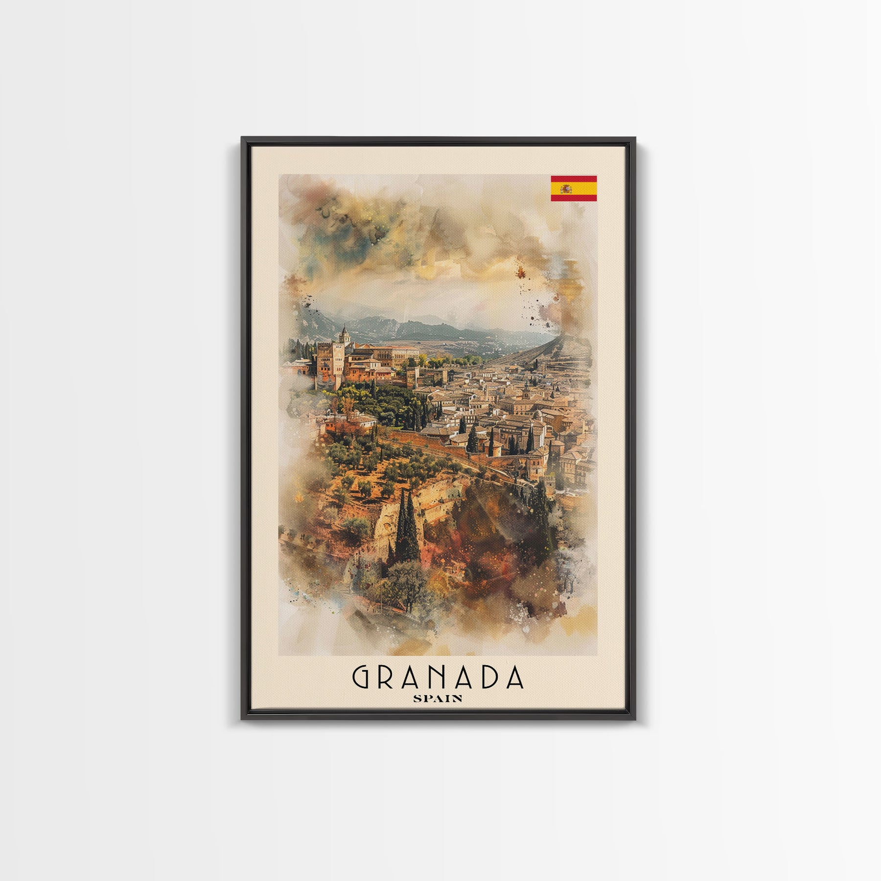 Granada Spain Landscape Art, Framed Canvas Print, Bedroom Wall Art, Travel Poster, Home Decor, Spanish Art