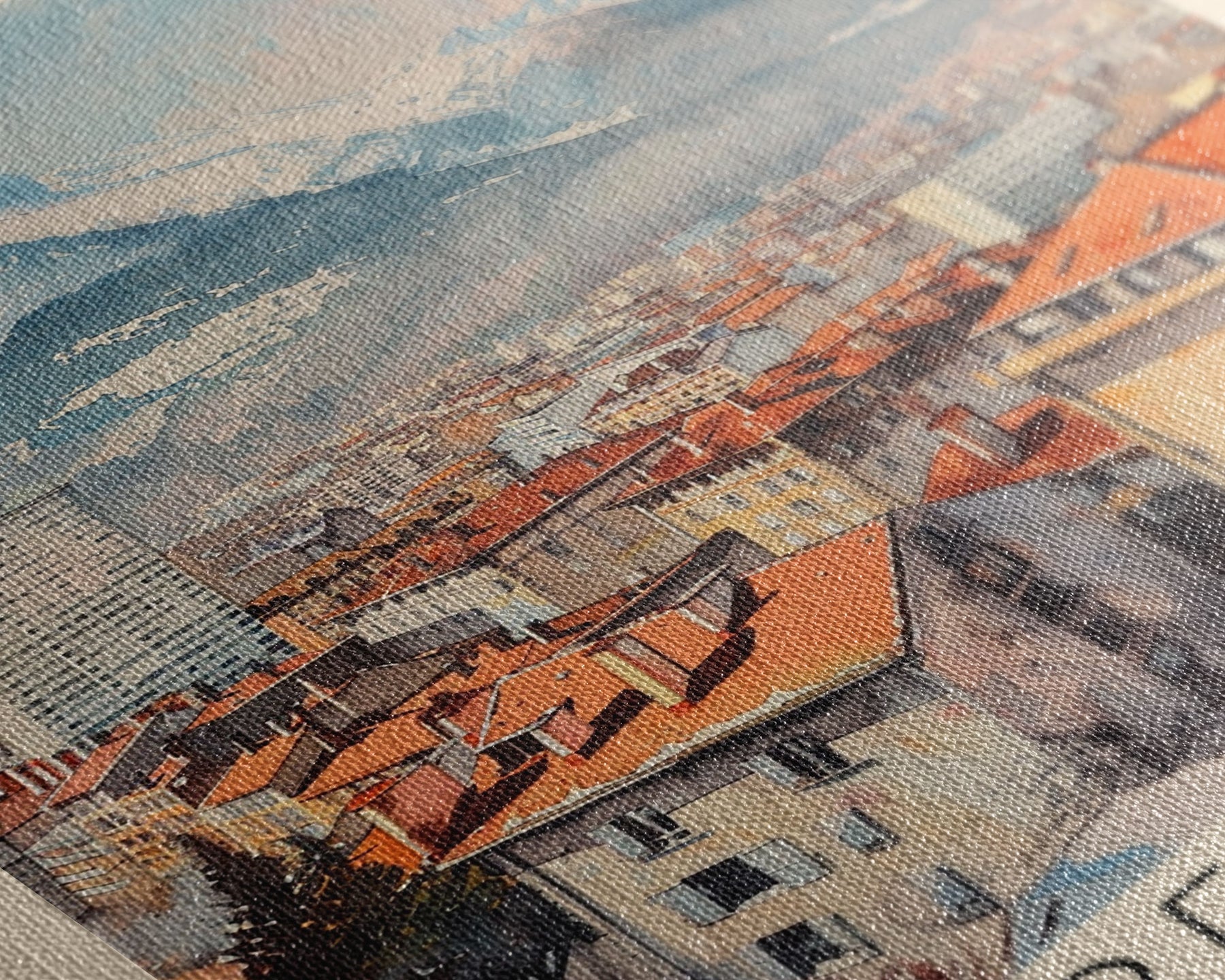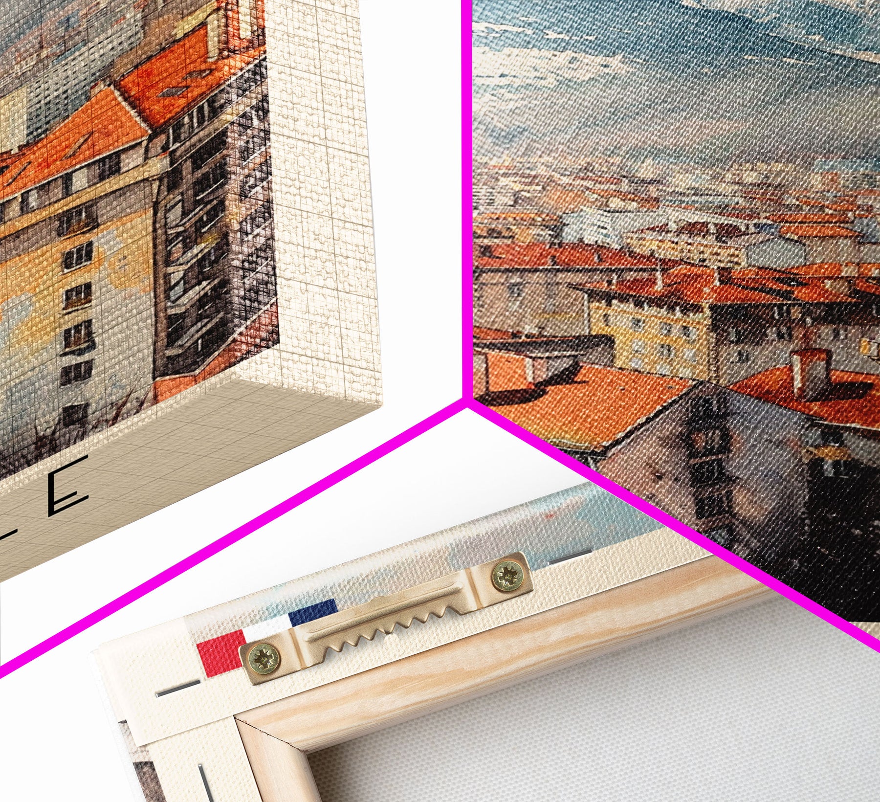 Grenoble France Mountain View Art, Framed Canvas Print, Wall Art for Bedroom, Travel Poster Art, Home Decoration, French Wall Art