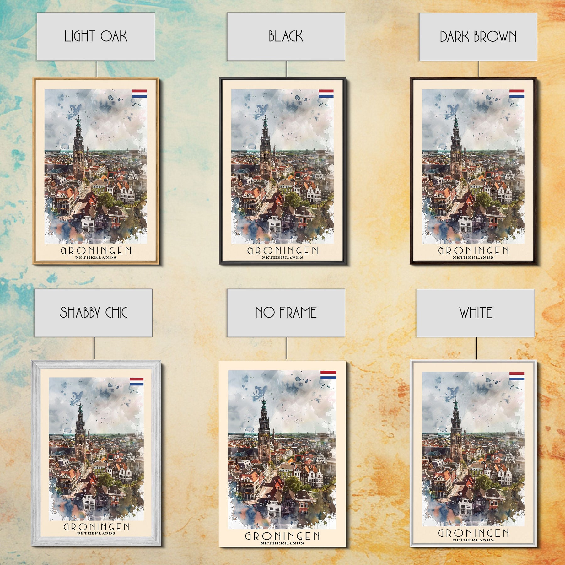 Groningen Netherlands Cityscape Art, Framed Canvas Print, Living Room Wall Art, Travel Poster, Home Decoration, Dutch Wall Art