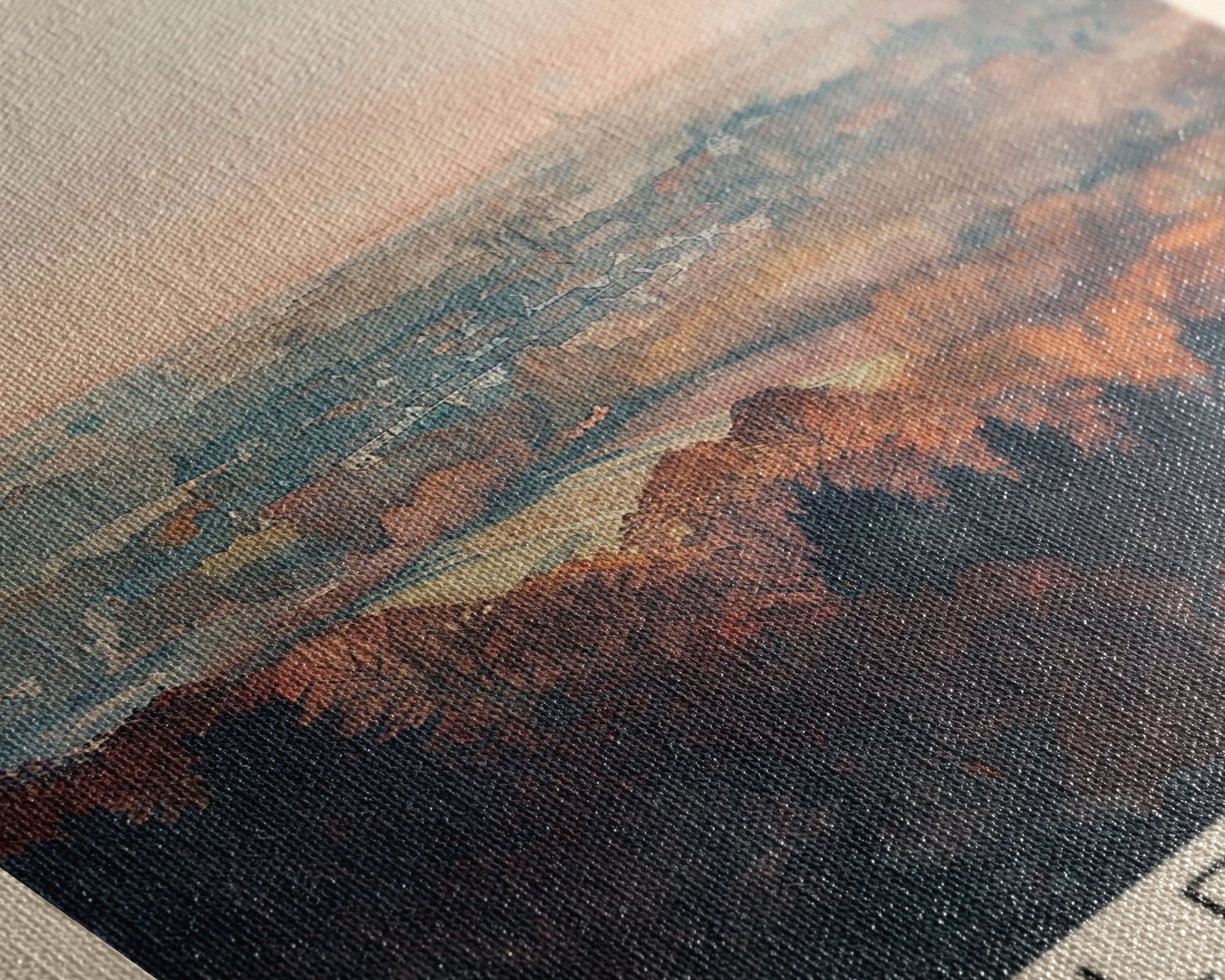 Most of our canvases are made in the USA, with the exception of canvases ordered with the light oak unstained frames, and any large canvases (24x48, 30x60, 16x48 and 20x60) ordered WITH a frame. These are temporarily made in and shipped from Europe, while we try to find a more consistent supplier in the USA.