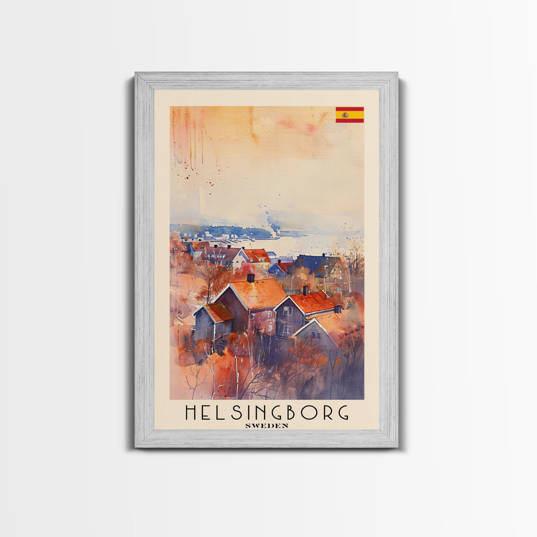 Helsingborg Sweden Coastal Town Art, Framed Canvas Wall Art, Home Decor, Living Room Art, Scandinavian Poster, Wall Decor, Travel Poster Art