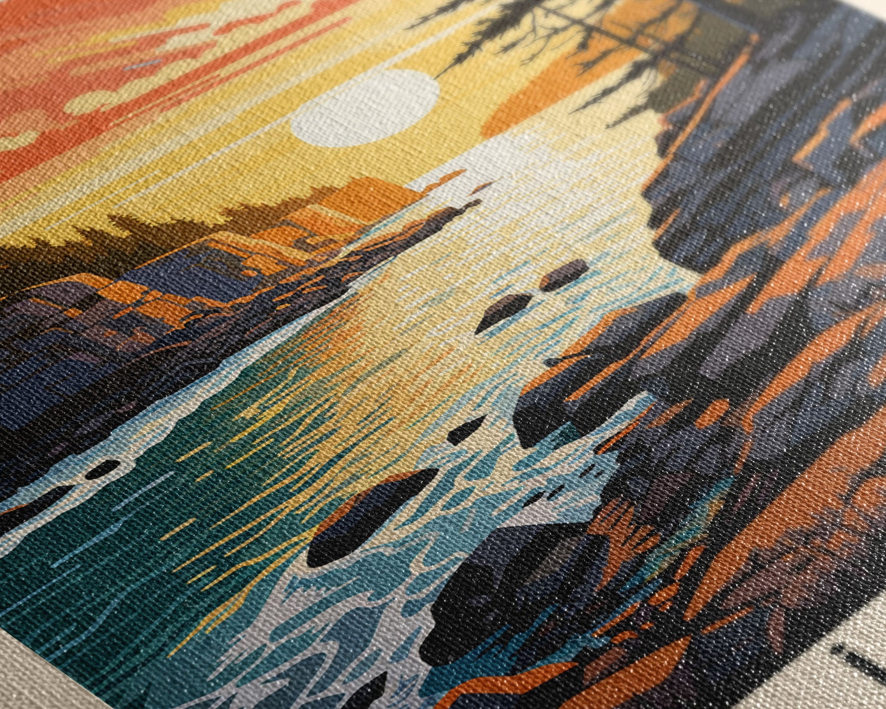 Most of our canvases are made in the USA, with the exception of canvases ordered with the light oak unstained frames, and any large canvases (24x48, 30x60, 16x48 and 20x60) ordered WITH a frame. These are temporarily made in and shipped from Europe, while we try to find a more consistent supplier in the USA.