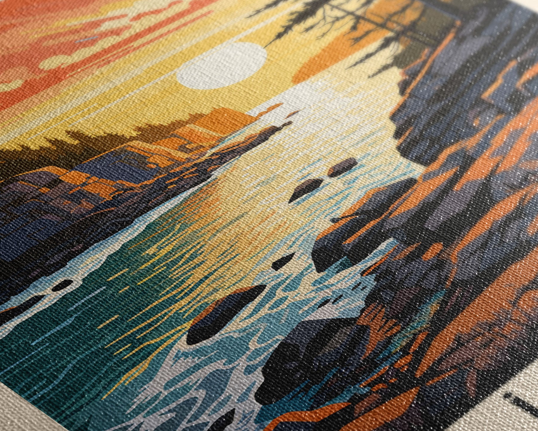 Most of our canvases are made in the USA, with the exception of canvases ordered with the light oak unstained frames, and any large canvases (24x48, 30x60, 16x48 and 20x60) ordered WITH a frame. These are temporarily made in and shipped from Europe, while we try to find a more consistent supplier in the USA.