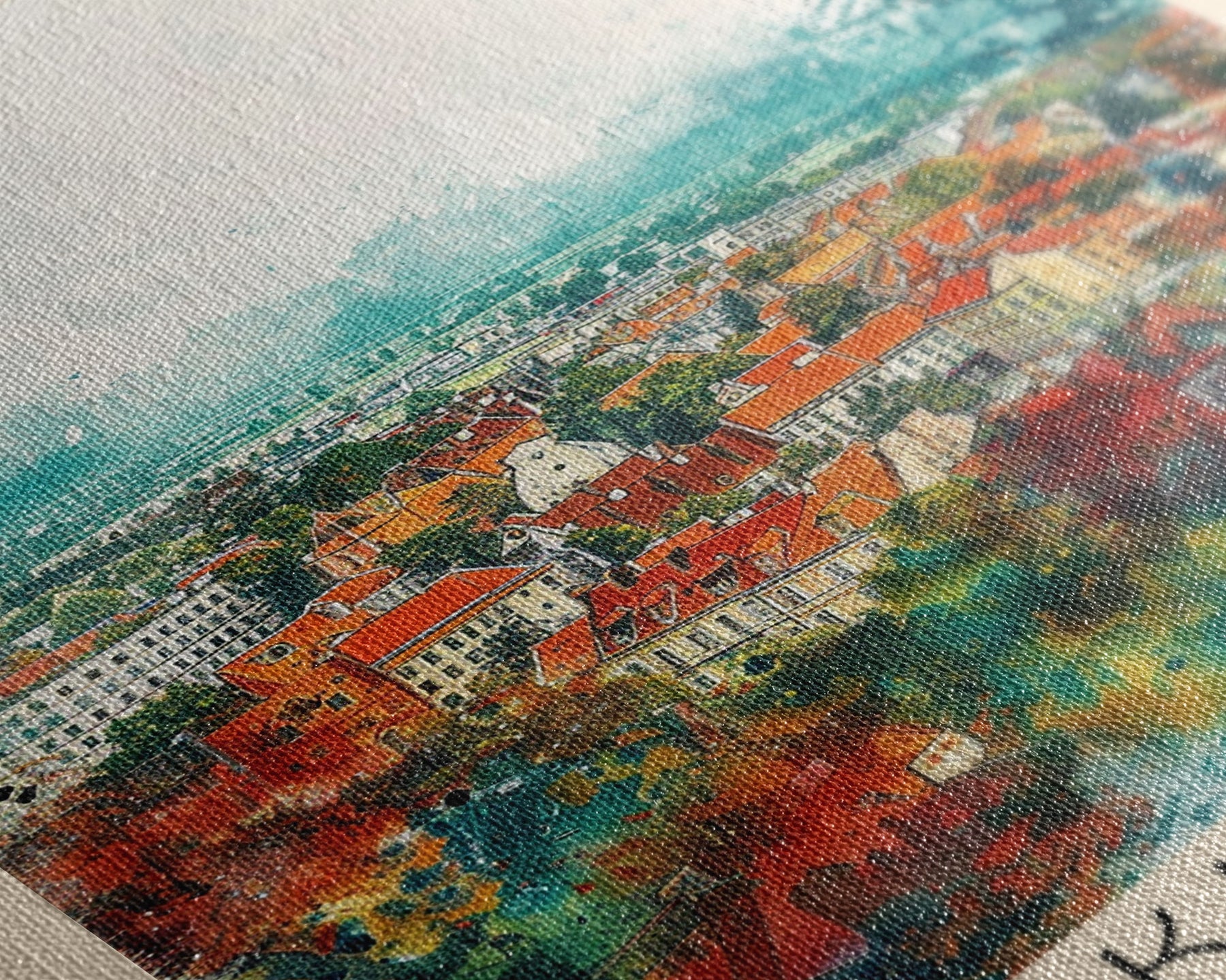 Most of our canvases are made in the USA, with the exception of canvases ordered with the light oak unstained frames, and any large canvases (24x48, 30x60, 16x48 and 20x60) ordered WITH a frame. These are temporarily made in and shipped from Europe, while we try to find a more consistent supplier in the USA.