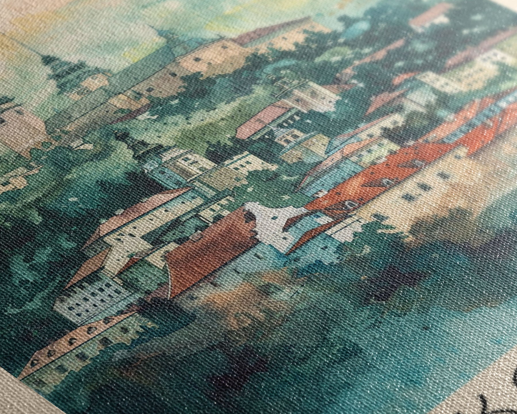 Most of our canvases are made in the USA, with the exception of canvases ordered with the light oak unstained frames, and any large canvases (24x48, 30x60, 16x48 and 20x60) ordered WITH a frame. These are temporarily made in and shipped from Europe, while we try to find a more consistent supplier in the USA.