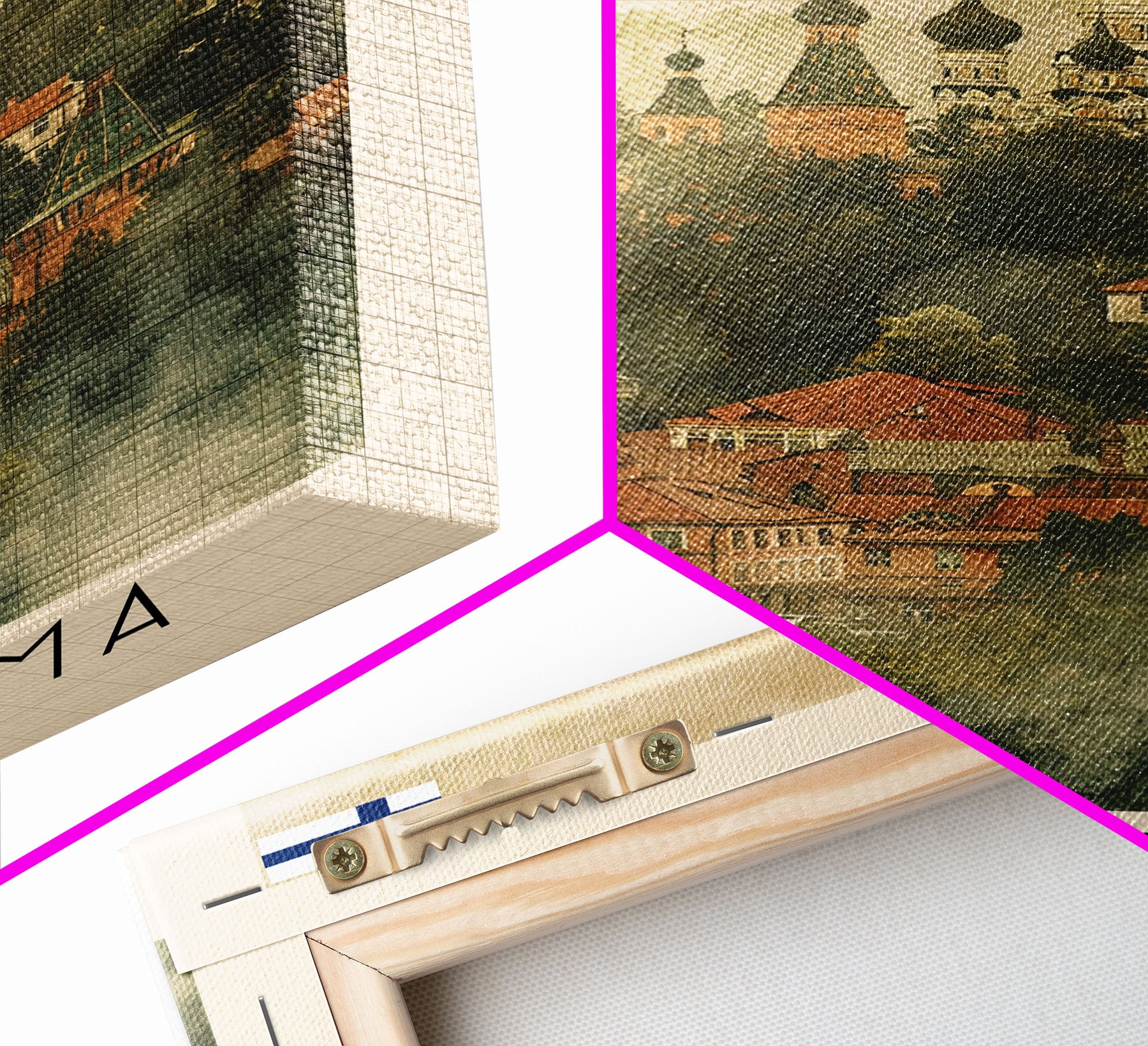 Most of our canvases are made in the USA, with the exception of canvases ordered with the light oak unstained frames, and any large canvases (24x48, 30x60, 16x48 and 20x60) ordered WITH a frame. These are temporarily made in and shipped from Europe, while we try to find a more consistent supplier in the USA.