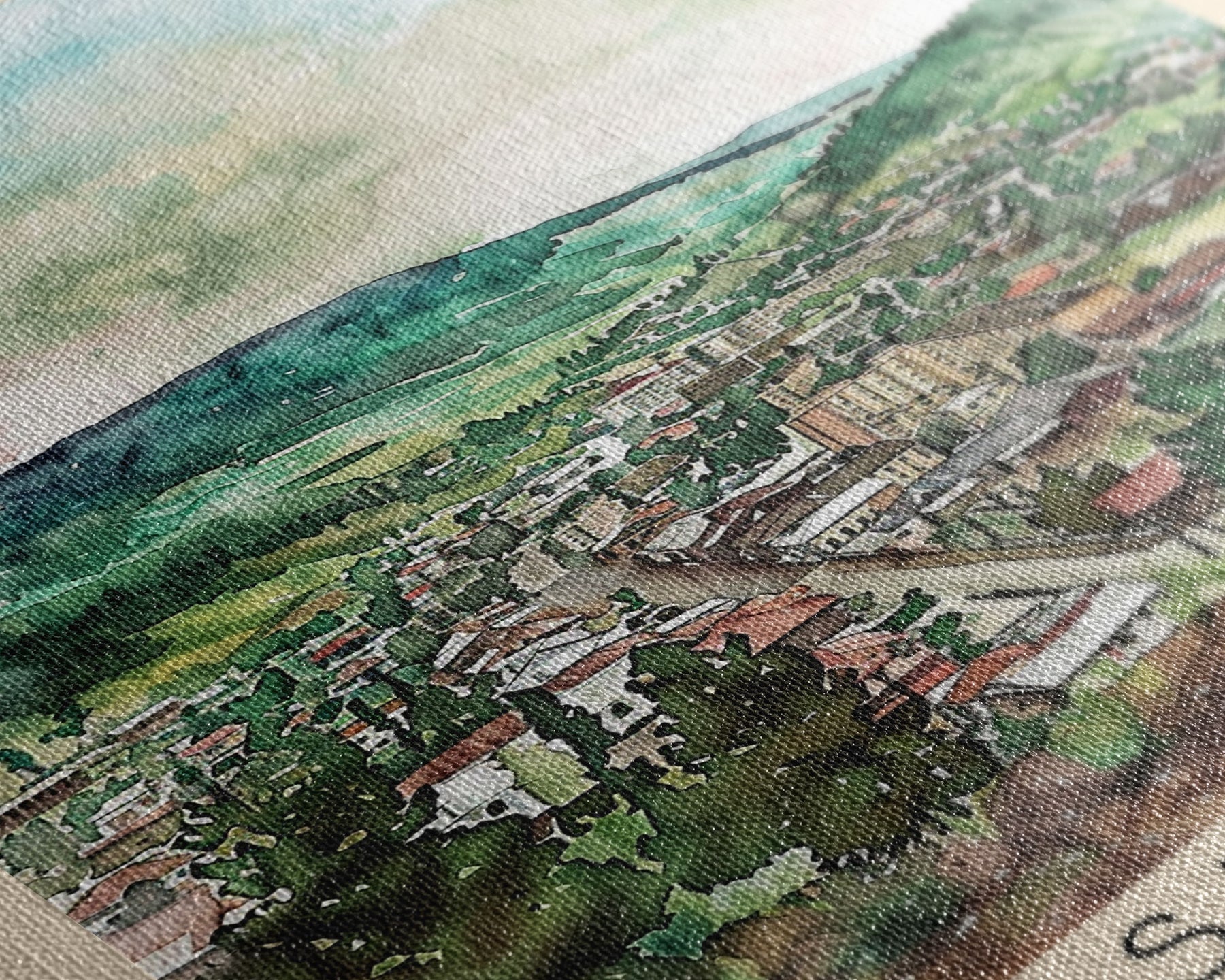 Most of our canvases are made in the USA, with the exception of canvases ordered with the light oak unstained frames, and any large canvases (24x48, 30x60, 16x48 and 20x60) ordered WITH a frame. These are temporarily made in and shipped from Europe, while we try to find a more consistent supplier in the USA.