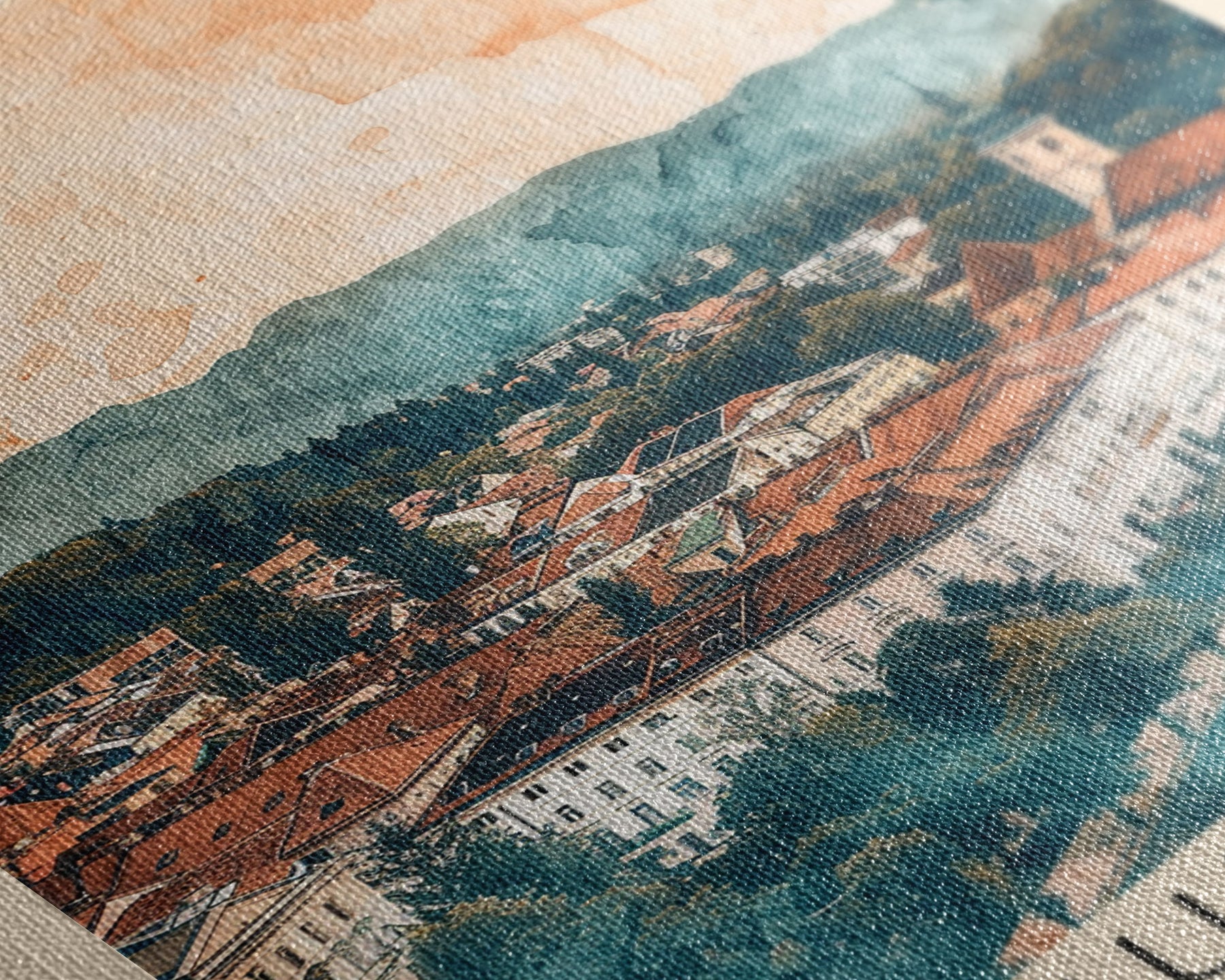 Most of our canvases are made in the USA, with the exception of canvases ordered with the light oak unstained frames, and any large canvases (24x48, 30x60, 16x48 and 20x60) ordered WITH a frame. These are temporarily made in and shipped from Europe, while we try to find a more consistent supplier in the USA.
