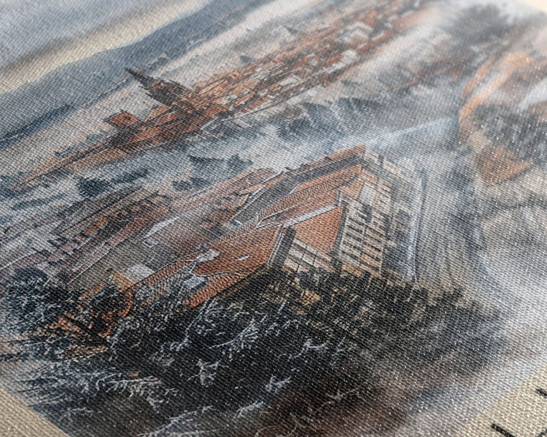 Most of our canvases are made in the USA, with the exception of canvases ordered with the light oak unstained frames, and any large canvases (24x48, 30x60, 16x48 and 20x60) ordered WITH a frame. These are temporarily made in and shipped from Europe, while we try to find a more consistent supplier in the USA.