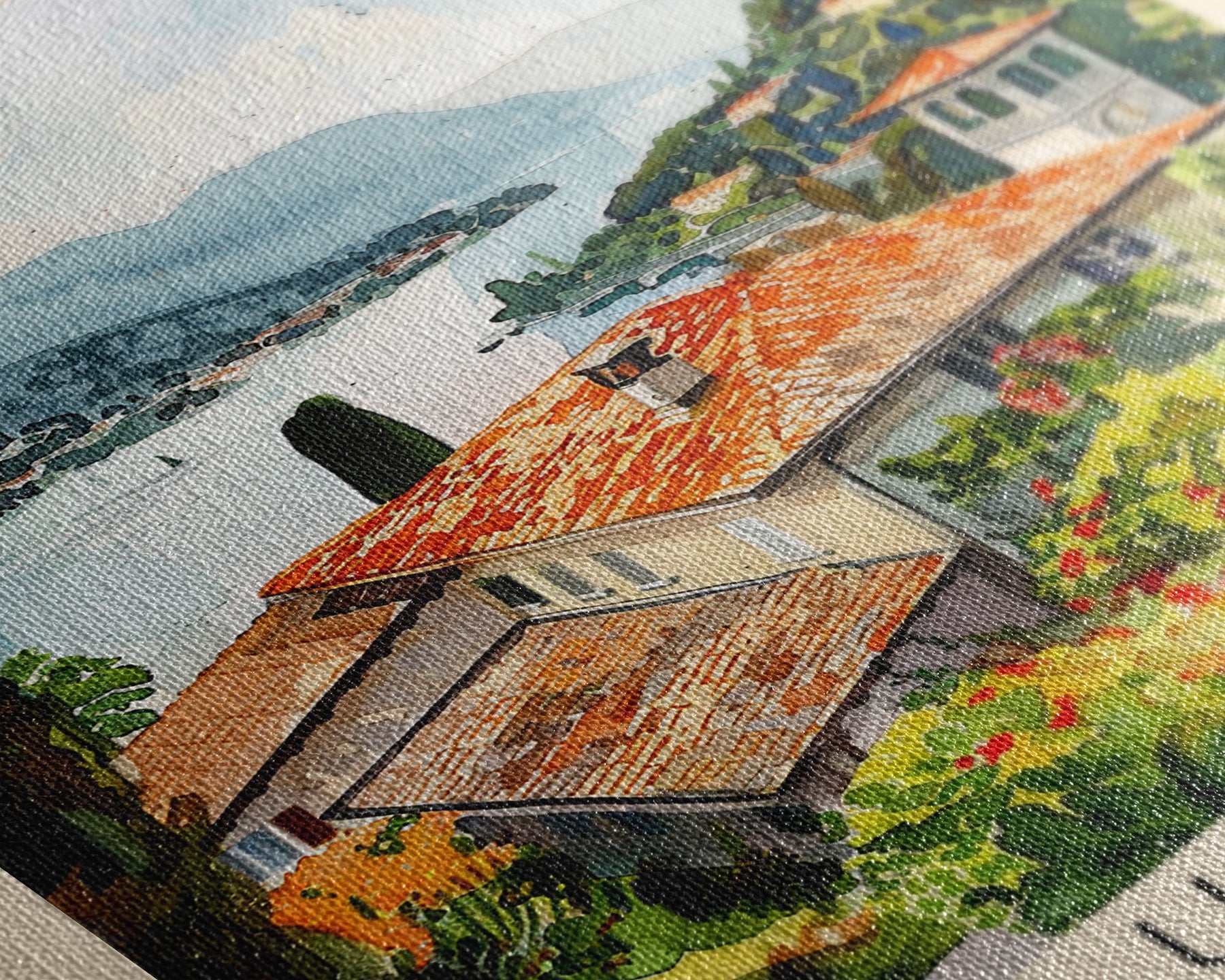 Most of our canvases are made in the USA, with the exception of canvases ordered with the light oak unstained frames, and any large canvases (24x48, 30x60, 16x48 and 20x60) ordered WITH a frame. These are temporarily made in and shipped from Europe, while we try to find a more consistent supplier in the USA.
