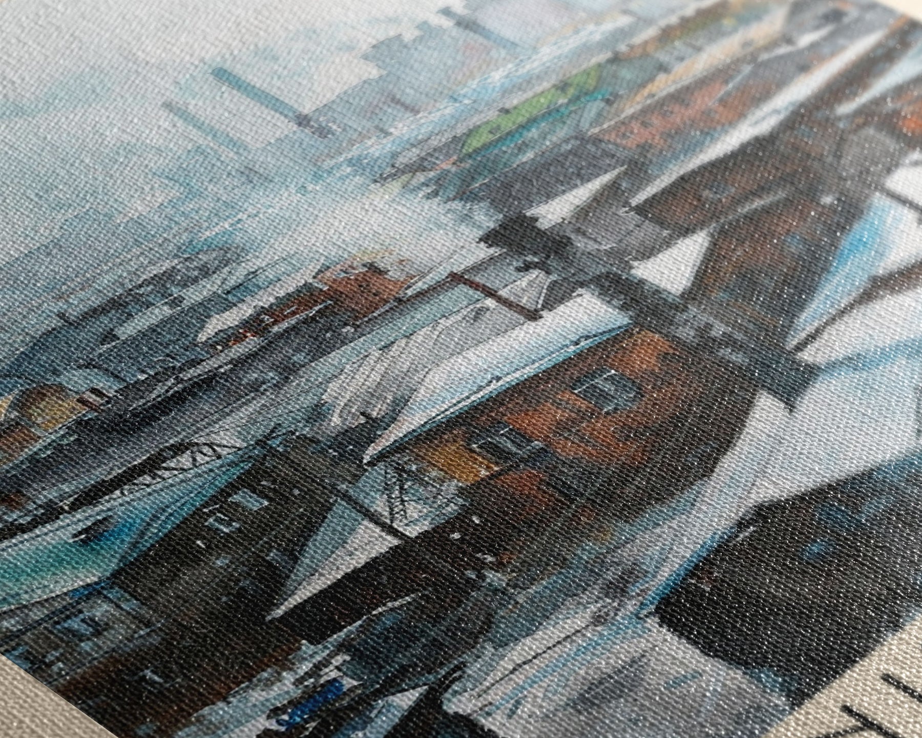 Most of our canvases are made in the USA, with the exception of canvases ordered with the light oak unstained frames, and any large canvases (24x48, 30x60, 16x48 and 20x60) ordered WITH a frame. These are temporarily made in and shipped from Europe, while we try to find a more consistent supplier in the USA.