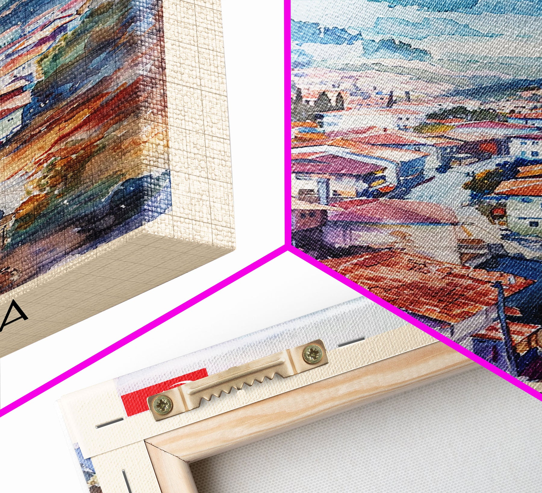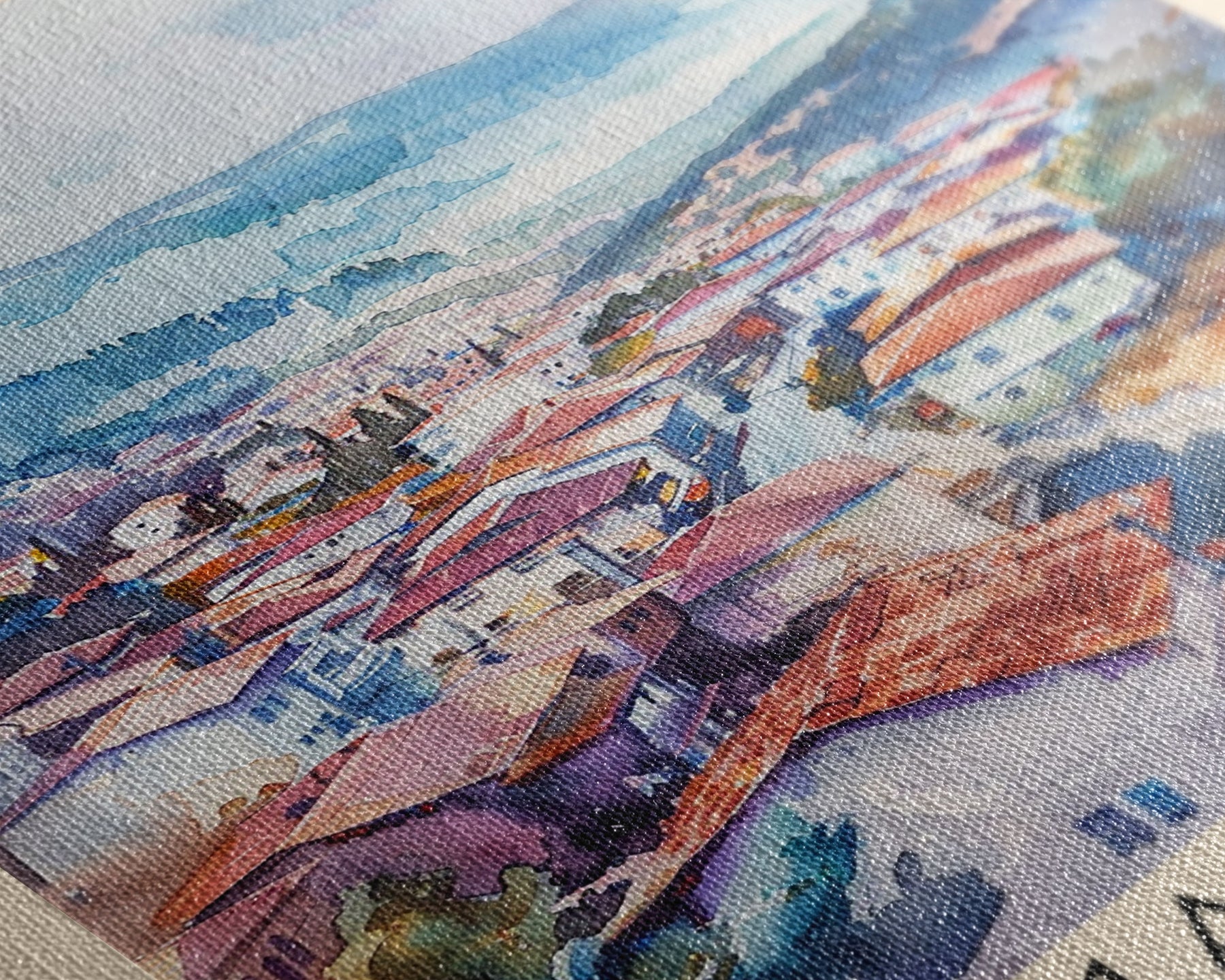 Most of our canvases are made in the USA, with the exception of canvases ordered with the light oak unstained frames, and any large canvases (24x48, 30x60, 16x48 and 20x60) ordered WITH a frame. These are temporarily made in and shipped from Europe, while we try to find a more consistent supplier in the USA.