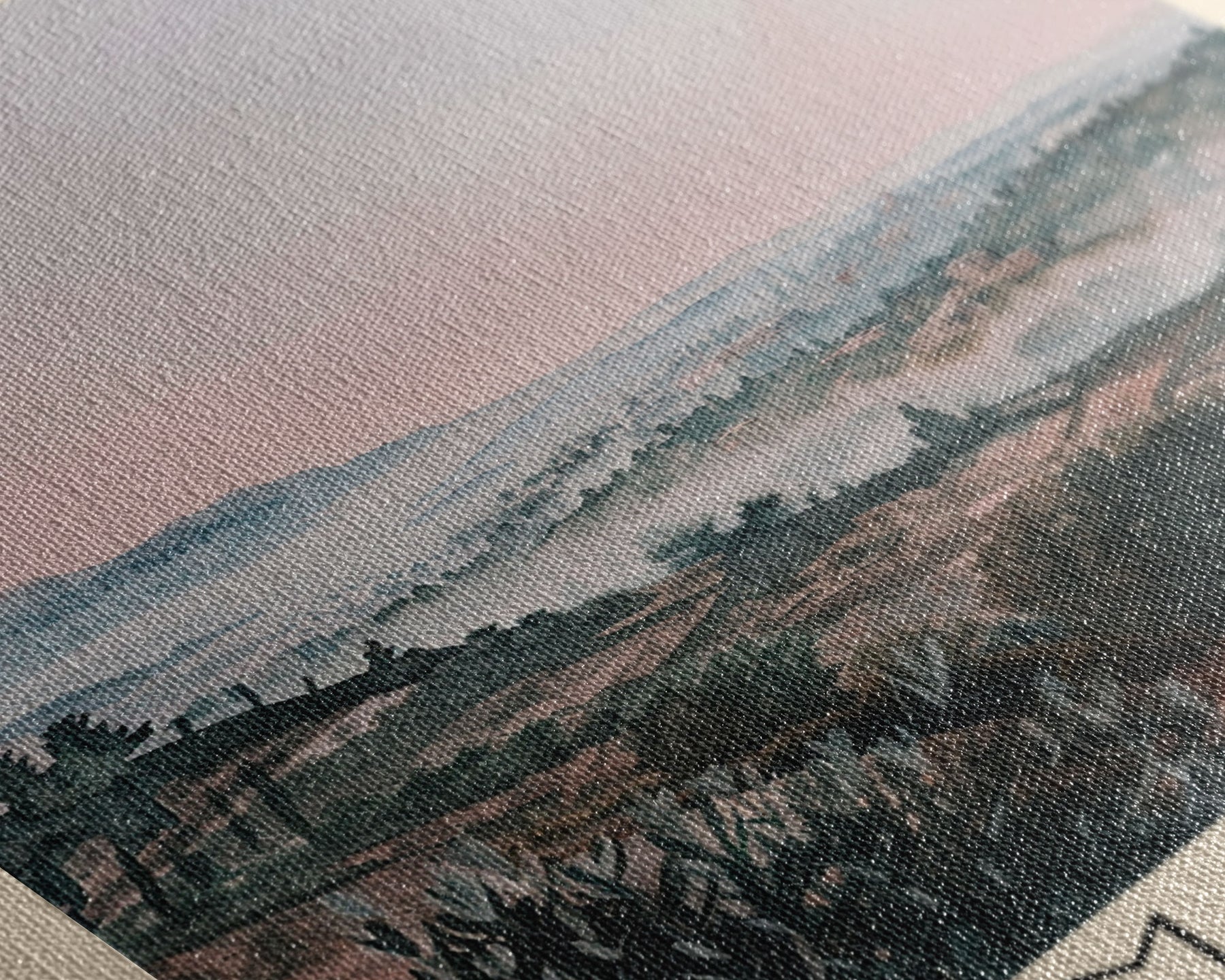 Most of our canvases are made in the USA, with the exception of canvases ordered with the light oak unstained frames, and any large canvases (24x48, 30x60, 16x48 and 20x60) ordered WITH a frame. These are temporarily made in and shipped from Europe, while we try to find a more consistent supplier in the USA.