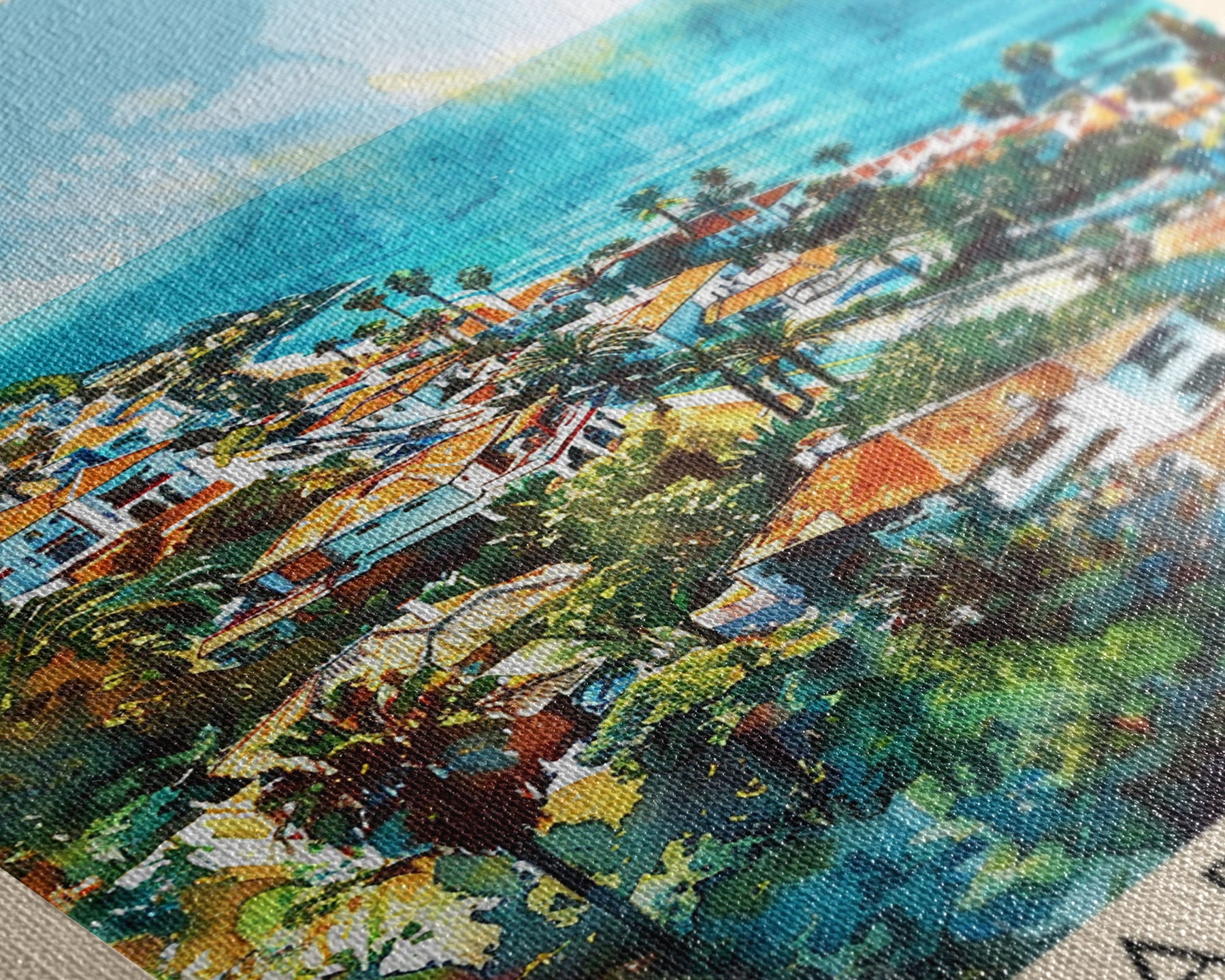 Most of our canvases are made in the USA, with the exception of canvases ordered with the light oak unstained frames, and any large canvases (24x48, 30x60, 16x48 and 20x60) ordered WITH a frame. These are temporarily made in and shipped from Europe, while we try to find a more consistent supplier in the USA.
