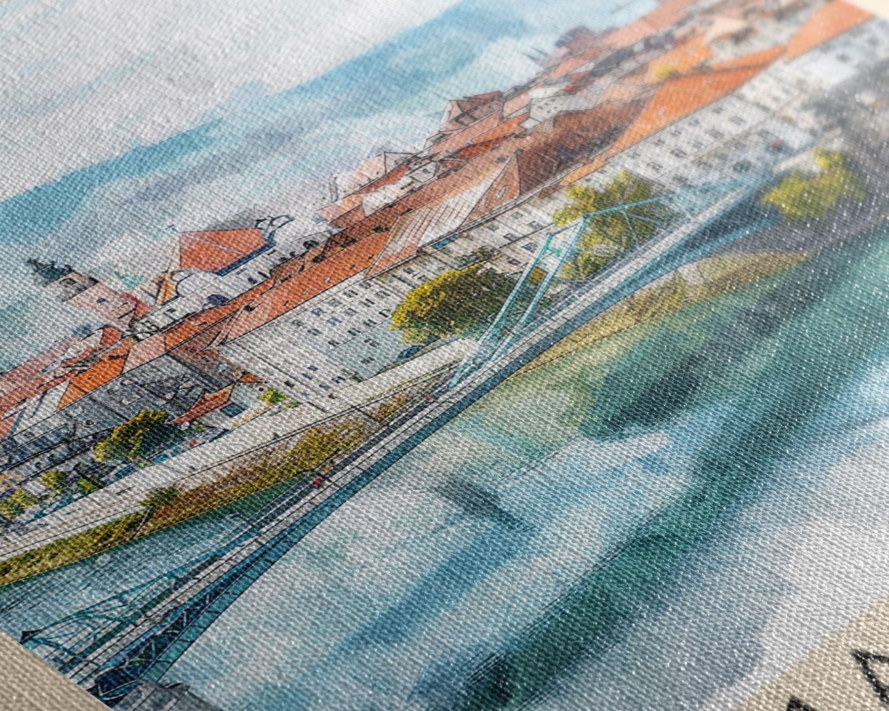 Most of our canvases are made in the USA, with the exception of canvases ordered with the light oak unstained frames, and any large canvases (24x48, 30x60, 16x48 and 20x60) ordered WITH a frame. These are temporarily made in and shipped from Europe, while we try to find a more consistent supplier in the USA.