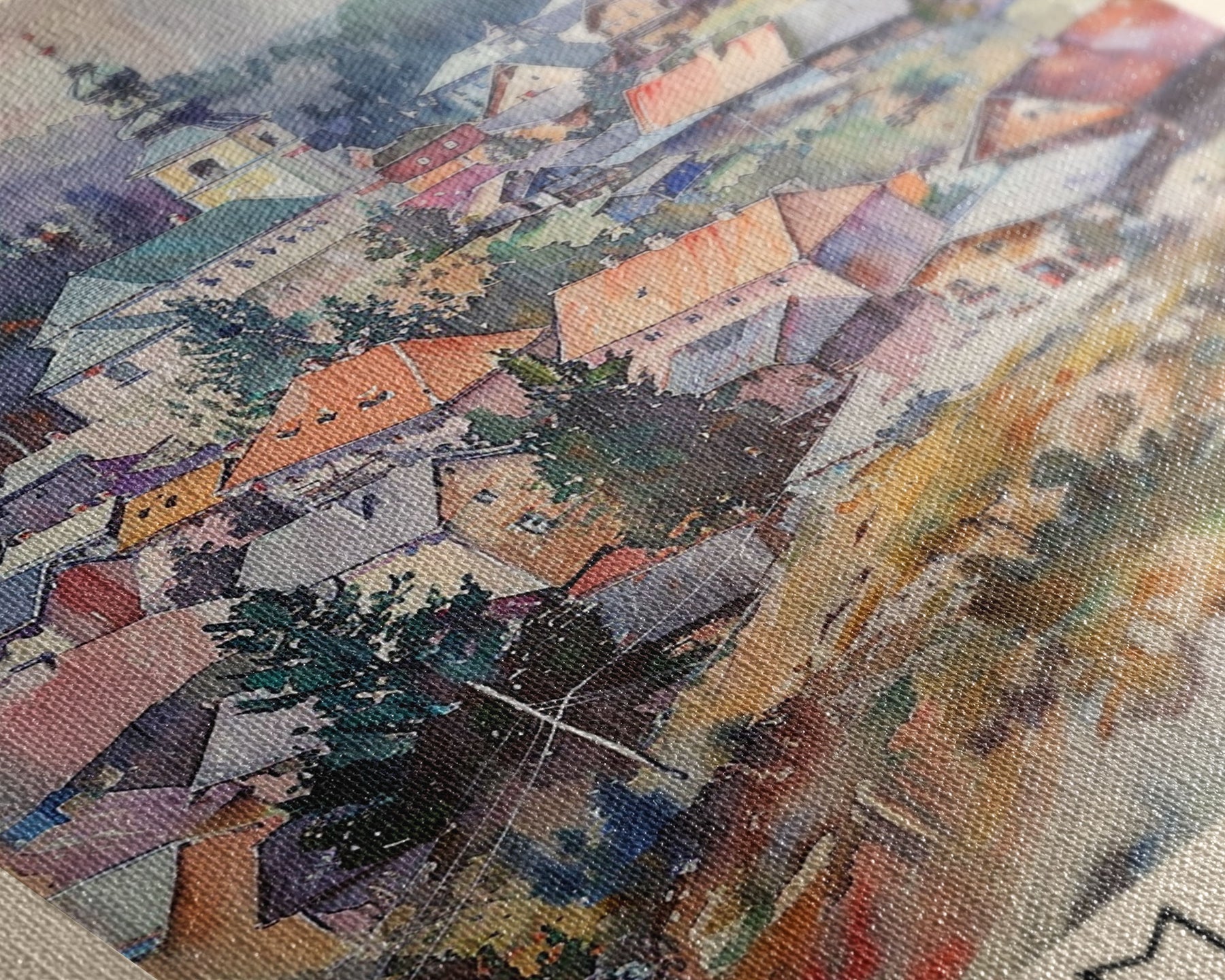 Most of our canvases are made in the USA, with the exception of canvases ordered with the light oak unstained frames, and any large canvases (24x48, 30x60, 16x48 and 20x60) ordered WITH a frame. These are temporarily made in and shipped from Europe, while we try to find a more consistent supplier in the USA.