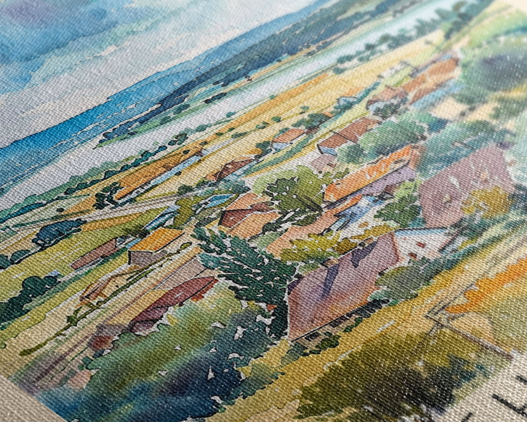 Most of our canvases are made in the USA, with the exception of canvases ordered with the light oak unstained frames, and any large canvases (24x48, 30x60, 16x48 and 20x60) ordered WITH a frame. These are temporarily made in and shipped from Europe, while we try to find a more consistent supplier in the USA.
