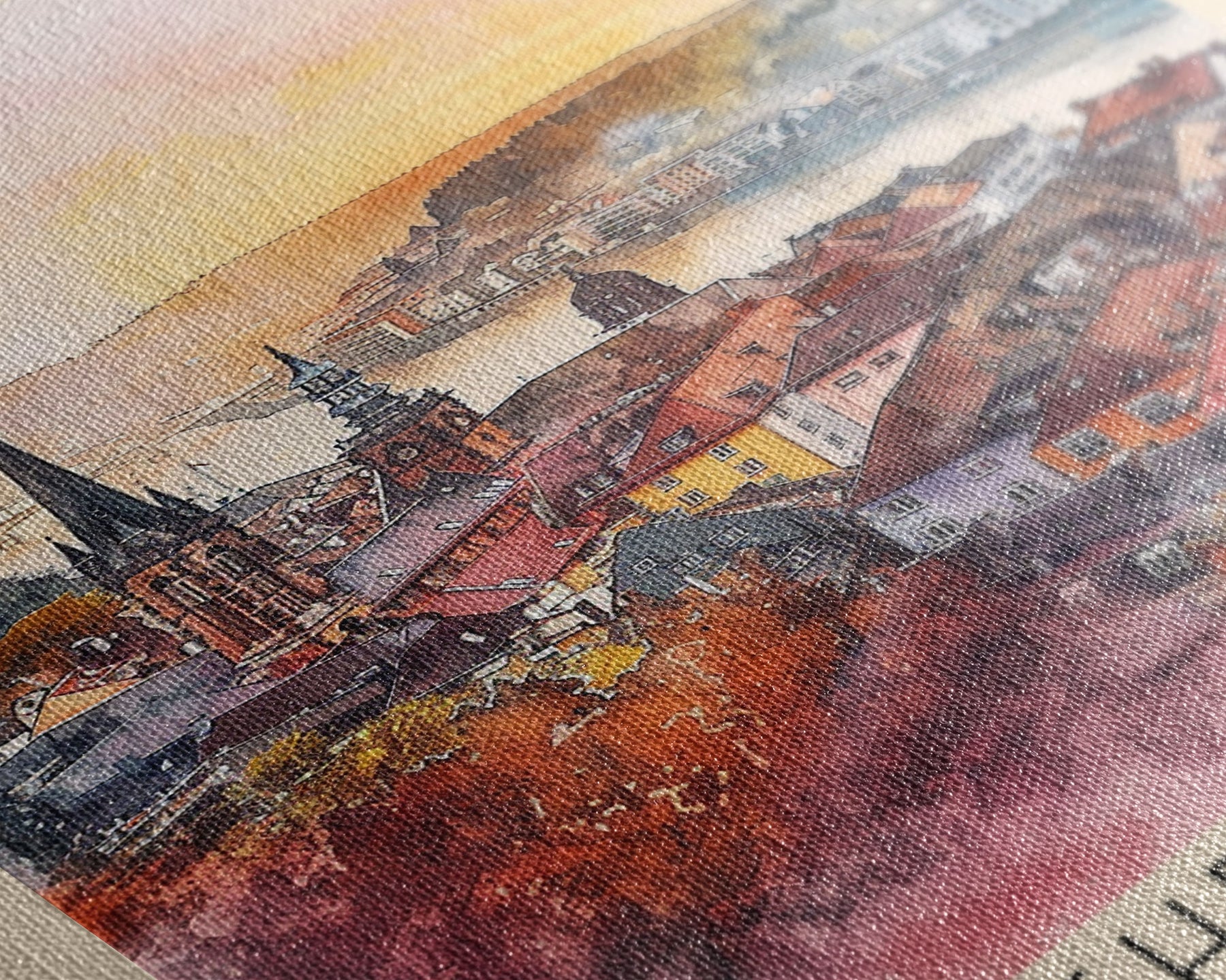 Most of our canvases are made in the USA, with the exception of canvases ordered with the light oak unstained frames, and any large canvases (24x48, 30x60, 16x48 and 20x60) ordered WITH a frame. These are temporarily made in and shipped from Europe, while we try to find a more consistent supplier in the USA.