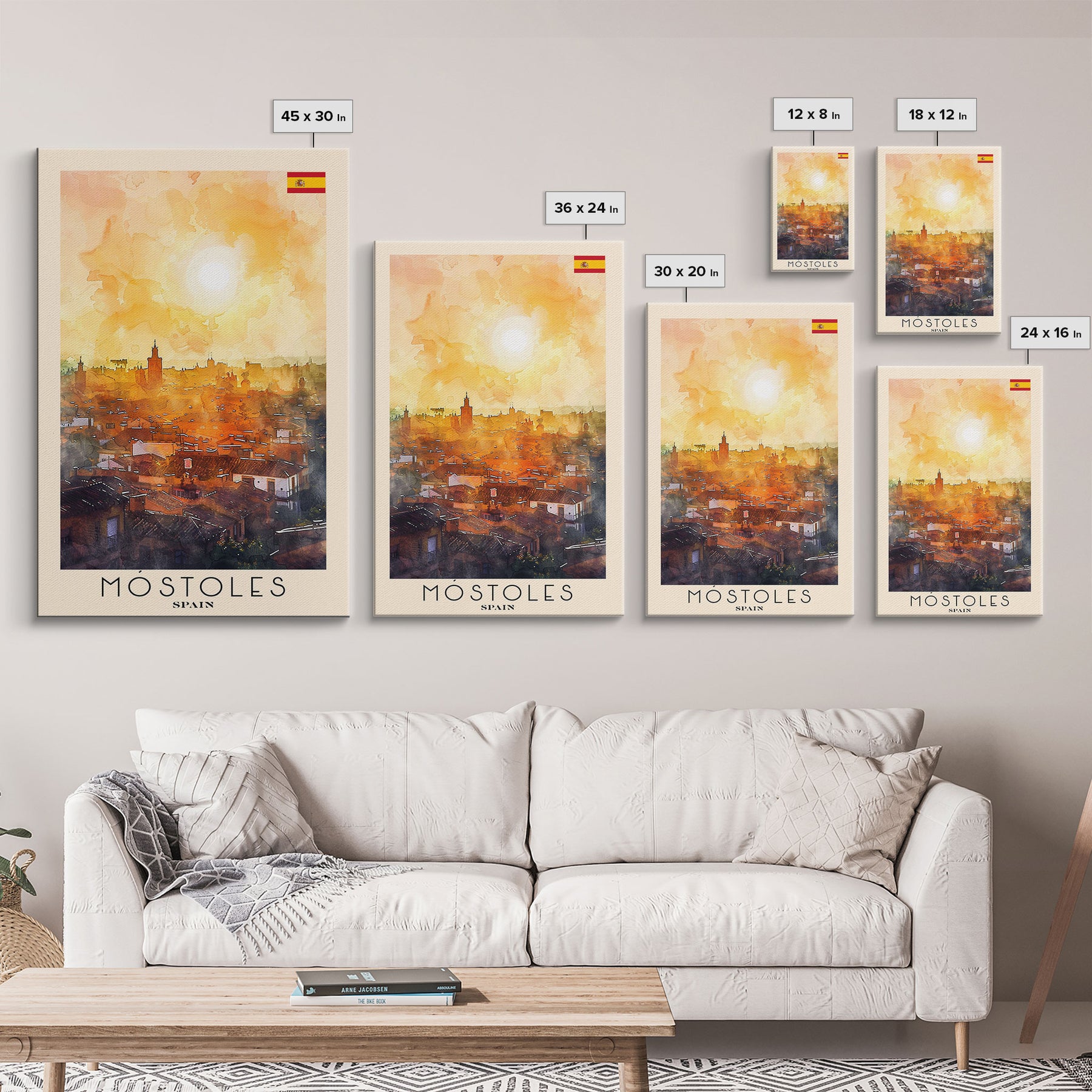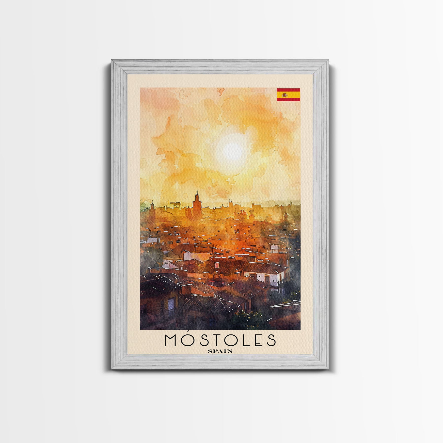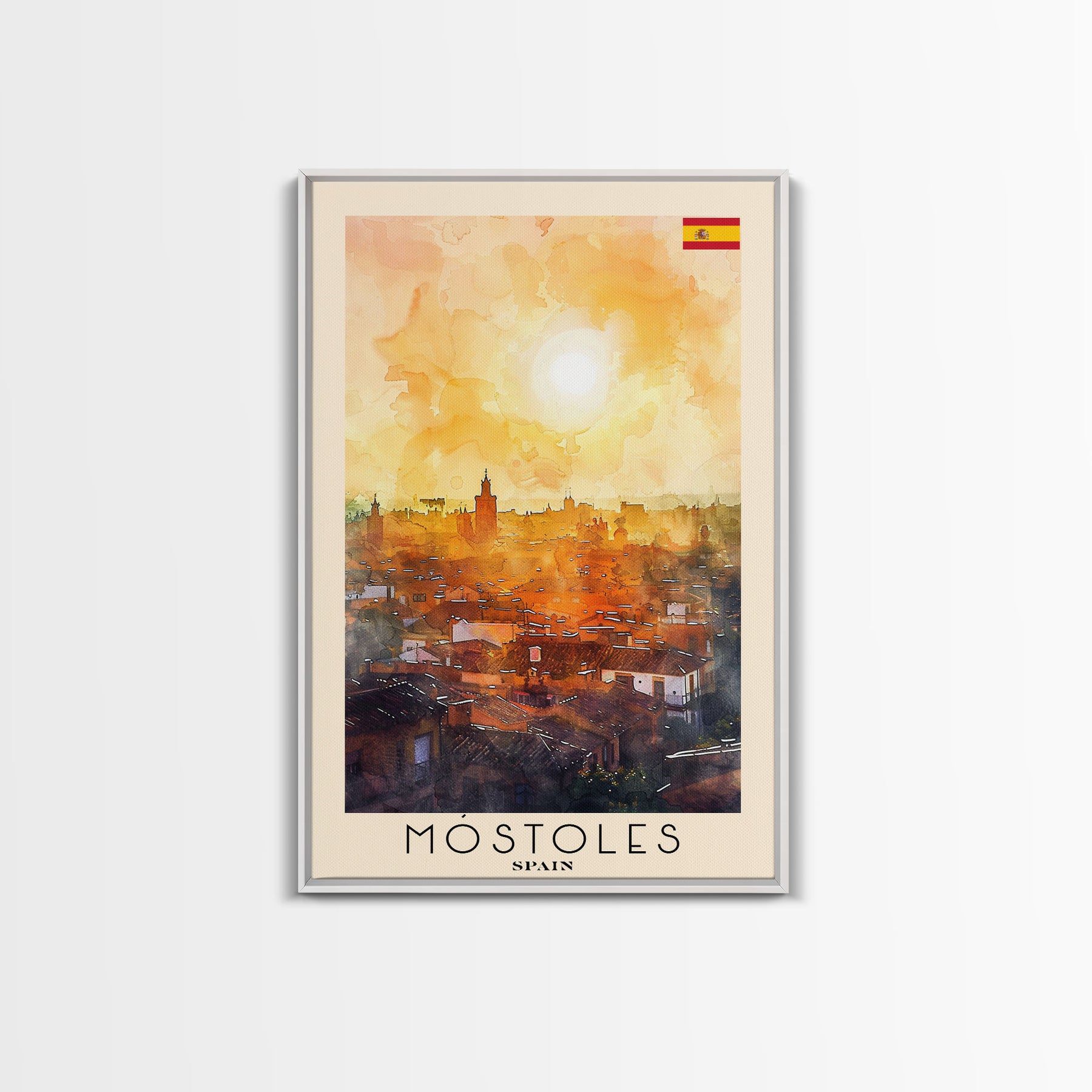 Móstoles Spain Travel Poster Framed Canvas Print, Urban Landscape, Watercolor Art, Wall Decor, Interior Decor, Travel Print, Unique Artwork
