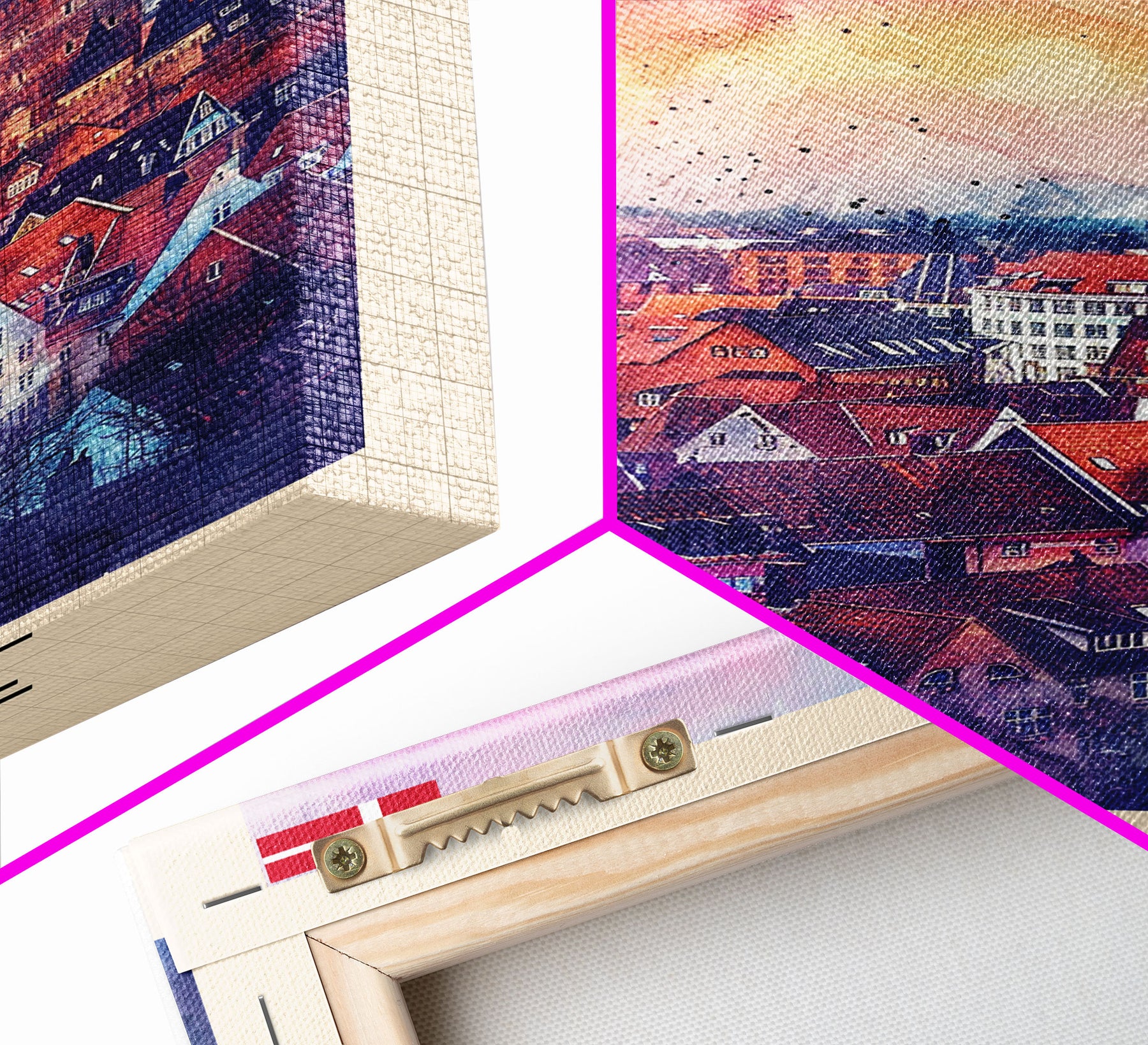 Hello and thank you for taking the time to view our modern high quality giclée artwork! We offer both posters and stretched canvas prints. Our posters are printed on Ultra Matte 60 lb / 230 GSM high quality photo paper, with a thickness of 10 mil. Our canvases are printed on museum grade 350 GSM canvas material with ECO friendly archival grade ink, then hand stretched and stapled over premium, FSC certified and shrink resistant frames. Designed and built to last a lifetime.