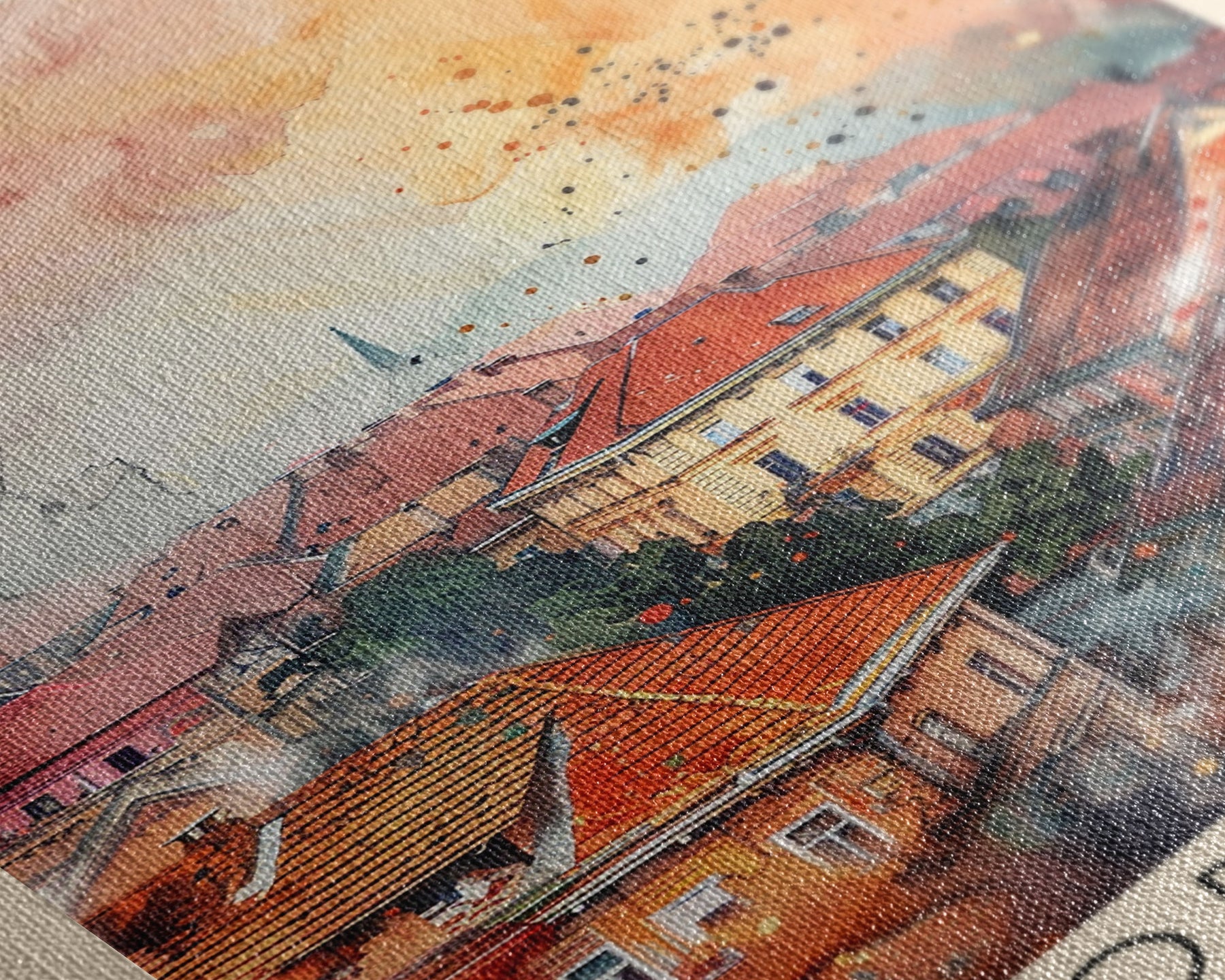 Most of our canvases are made in the USA, with the exception of canvases ordered with the light oak unstained frames, and any large canvases (24x48, 30x60, 16x48 and 20x60) ordered WITH a frame. These are temporarily made in and shipped from Europe, while we try to find a more consistent supplier in the USA.